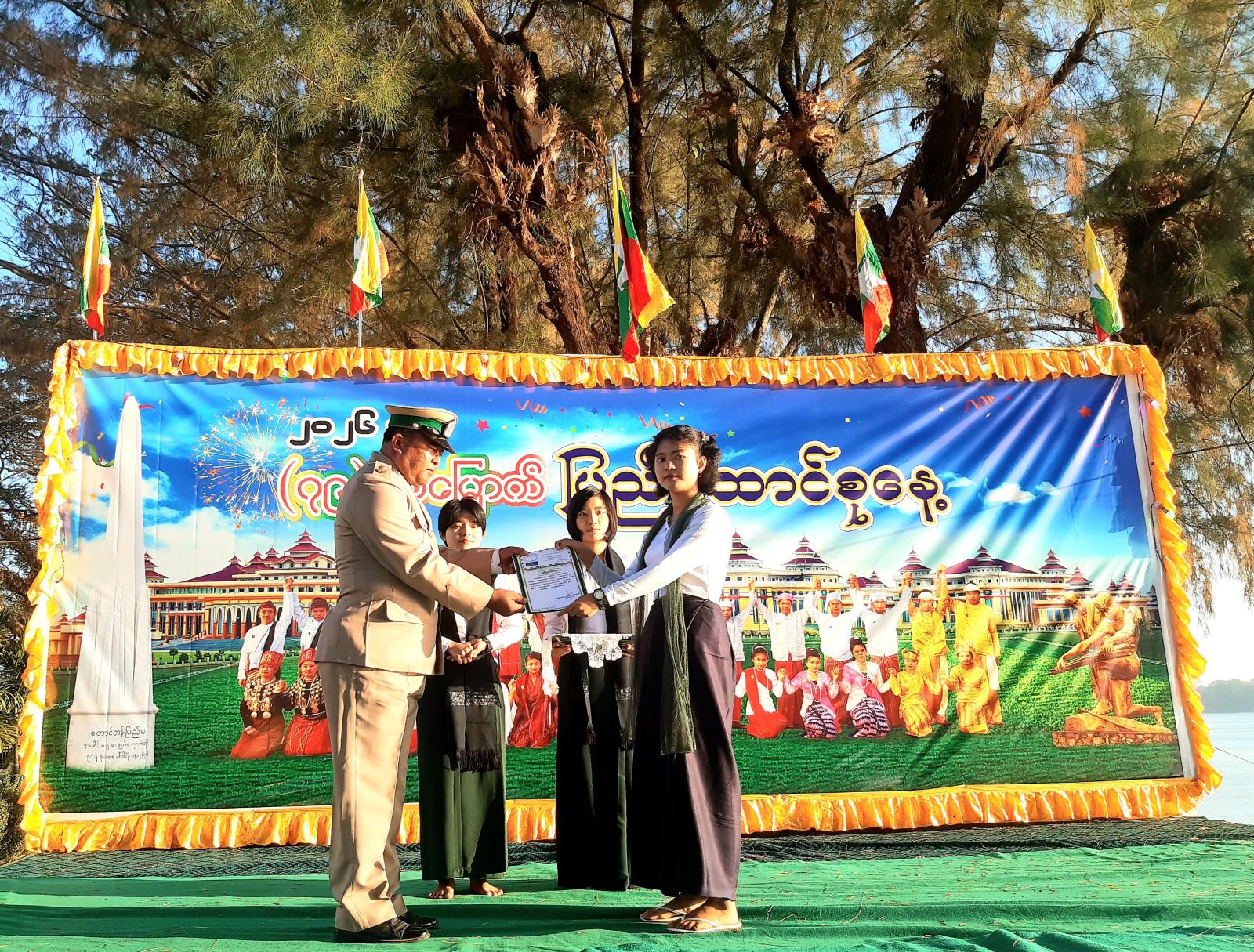ထို့နောက် ၂၀၂၆ ခုနှစ်၊ (၇၉)နှစ်မြောက် ပြည်ထောင်စုနေ့အထိမ်းအမှတ် စာစီစာကုံးပြိုင်ပွဲတွင် အထက်တန်းဆင့်၊ အလယ်တန်းဆင့် ပထမ၊ဒုတိယ၊တတိယဆုများရရှိကြသော ကျောင်းသား၊ ကျောင်းသူများအား မြို့နယ်စီမံခန့်ခွဲရေးနှင့်အုပ်ချုပ်ရေးကော်မတီဥက္ကဋ္ဌ ဦးမင်းဧရာထိုက်နှင့်အဖွဲ့ဝင်များ၊ ဌာနဆိုင်ရာတို့က ဆုများအသီးသီးပေးအပ်ချီးမြှင့်ခဲ့ကြပြီး မြို့နယ် ပြန်ကြားရေးနှင့်ပြည်သူ့ဆက်ဆံရေးဦးစီးဌာနမှ ၂၀၂၆ ခုနှစ်၊ (၇၉) နှစ်မြောက် ပြည်ထောင်စုနေ့အထိမ်းအမှတ် သတင်းစကားလက်ကမ်းစာစောင်များအား ဖြန့်ဝေပေးခဲ့ကြသည်။