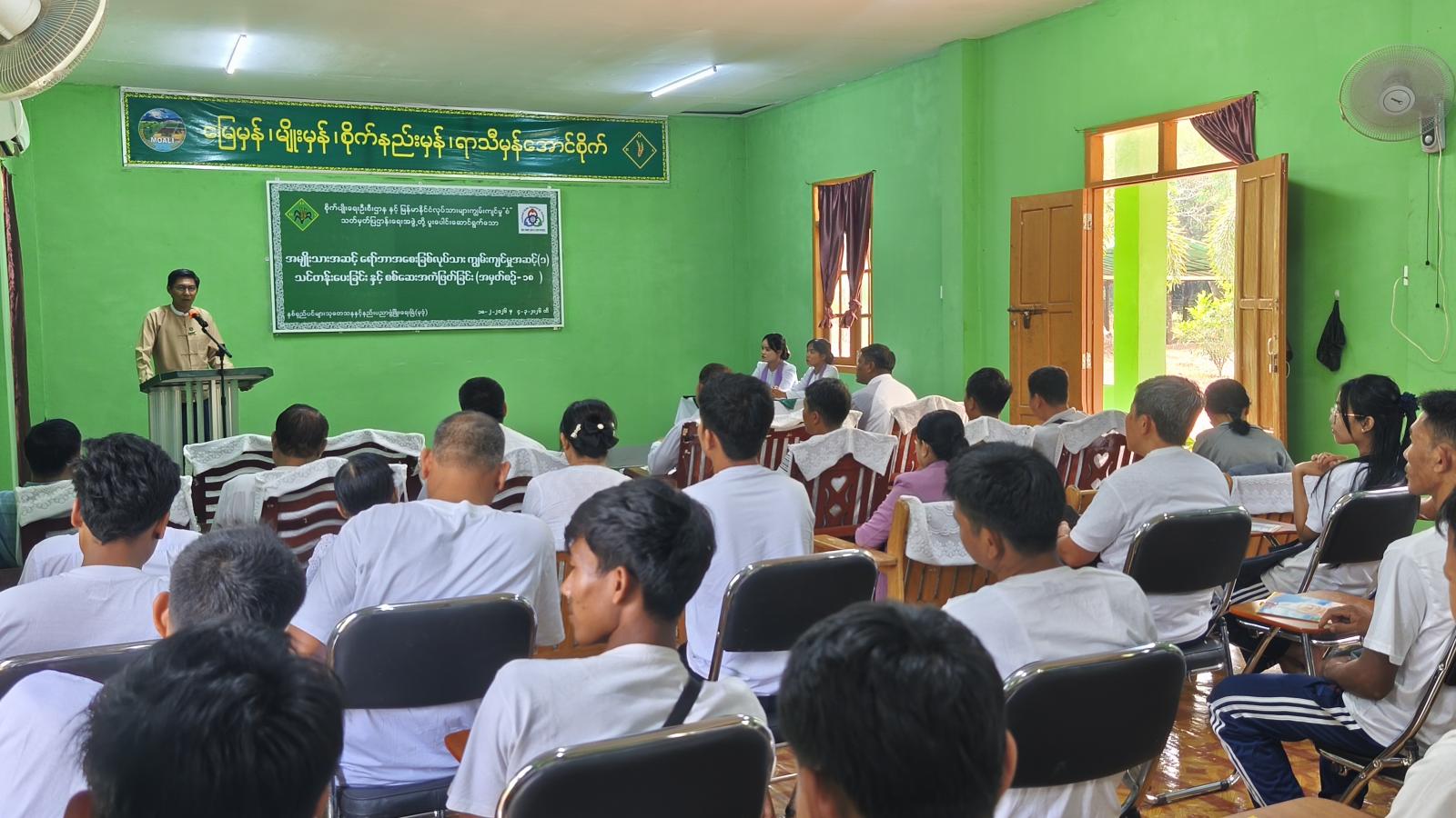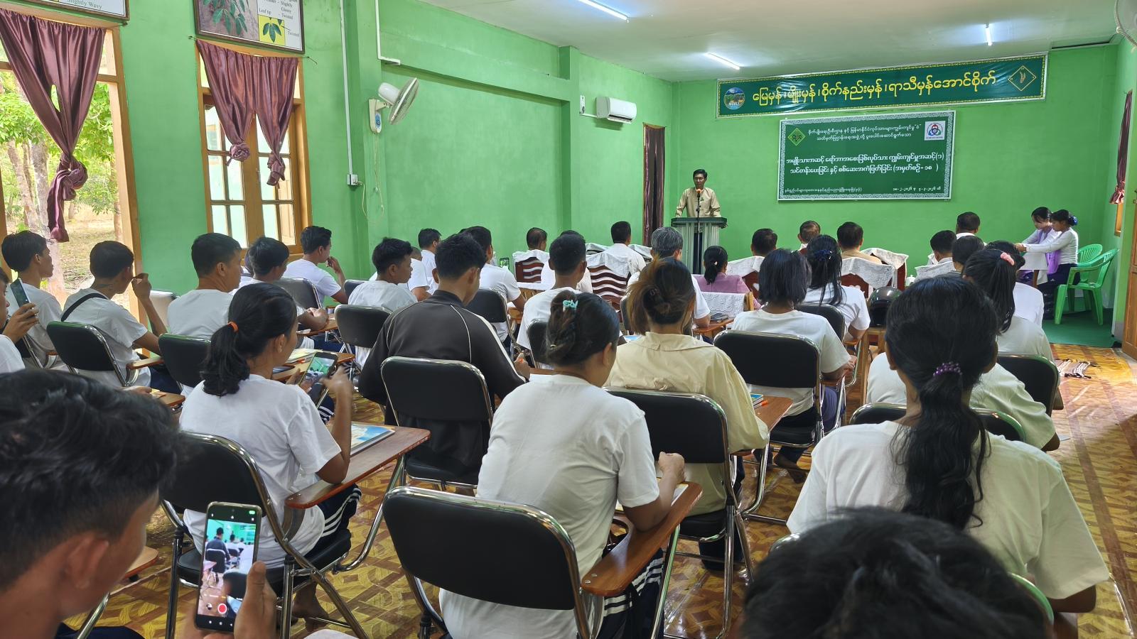 မွန်ပြည်နယ် မုဒုံမြို့တွင် အမျိုးသားအဆင့် ရော်ဘာအစေးခြစ် လုပ်သားကျွမ်းကျင်မှု အဆင့်(၁)သင်တန်းပေးခြင်းနှင့် စစ်ဆေးအကဲဖြတ်ခြင်း အမှတ်စဉ်(၁၈) သင်တန်းဖွင့်ပွဲကို ယနေ့နံနက်ပိုင်းက နှစ်ရှည်ပင်များသုတေသနနှင့် နည်းပညာဖွံ့ဖြိုးရေးခြံ(မုဒုံ) သင်တန်းဝင်းရှိခန်းမ၌ ပြုလုပ်သည်။