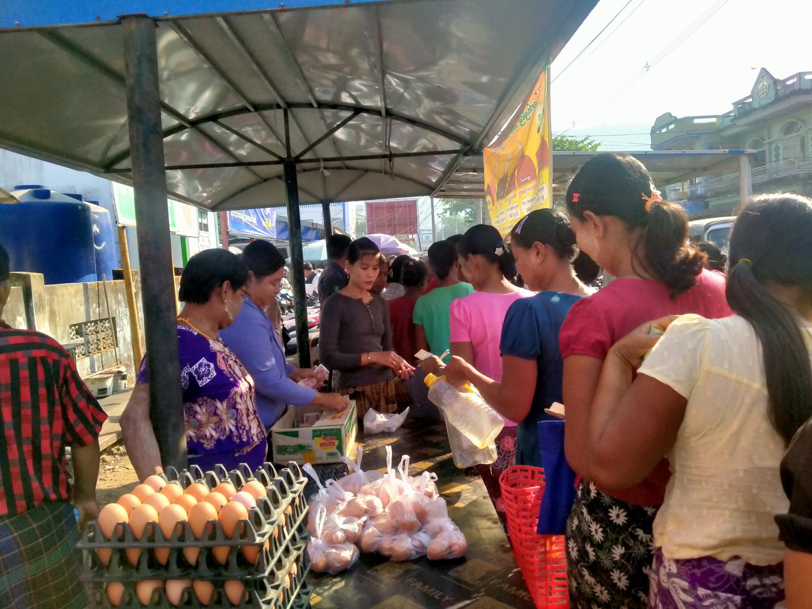 ထိုသို့ရောင်းချရာတွင် အခြေခံစားသောက်ကုန်စည်များဖြစ်သည့် စားအုံးဆီတစ်ပိဿာ ရည်ညွှန်းစျေး (၆၇၅၈) ကျပ်၊ ကြက်ဥ (၄) လုံး (၁၅၀၀) ကျပ်စသည်တို့ကို စျေးနှုန်းချိုသာစွာဖြင့် ရောင်းချပေးခဲ့ရာ အများပြည်သူများ ဝယ်ယူအားပေးခဲ့ကြောင်း သိရသည်။