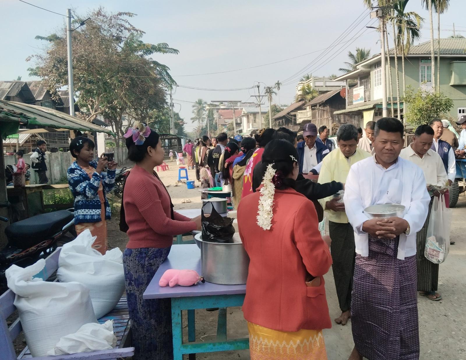 လောင်းလှူပူဇော်ပွဲတွင် သံဃာတော်အရှင်သူမြတ်များနှင့် ရဟန်း၊ သာမဏေအပါး (၂၁၇) ပါး တို့အား အလှူရှင်များက ဆွမ်းဆန်၊ နဝကမ္မဝတ္ထုငွေနှင့် လှူဖွယ်ပစ္စည်းများကို လောင်းလှူပူဇော်ကြပြီး သံဃာတော်အရှင်သူမြတ်များနှင့် ရဟန်း၊ သာမဏေတို့က မြို့တွင်းသို့ လှည့်လည်၍ အလှူခံကြွချီတော်မူကြသည်။ ဆက်လက်၍ စာရေးတံမဲအတွက် သီးခြားအလှူရှင်များ၏ လှူဒါန်းငွေကျပ် ၆၃၇၀၀၀၀ကို သံဃာတော် ၈၈ ပါးတို့အား စာရေးတံမဲများ ဆက်ကပ် လှူဒါန်းကြပြီး လှူဒါန်းမှုအစုစုတို့အား တောင်ဖီလာ ကျောင်းတိုက်၊ ဓမ္မာရုံ၌ ရေစက်သွန်းချ အမျှပေးဝေခဲ့ကြသည်။