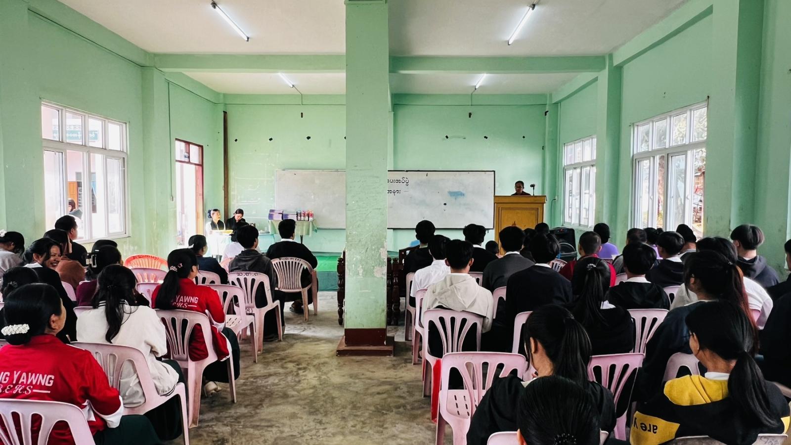ရှမ်းပြည်နယ်(အရှေ့ပိုင်း)၊ မိုင်းယောင်းခရိုင်၊ မိုင်းယောင်းမြို့နယ်တွင် တက္ကသိုလ်ဝင်တန်းဖြေဆိုမည့် ကျောင်းသား၊ ကျောင်းသူများအတွက် သင်ထောက်ကူပြုပစ္စည်းများ ပေးအပ်ပွဲကို ယနေ့နံနက်ပိုင်းက အ.ထ.က(မိုင်းယောင်း)၌ ကျင်းပခဲ့သည်။