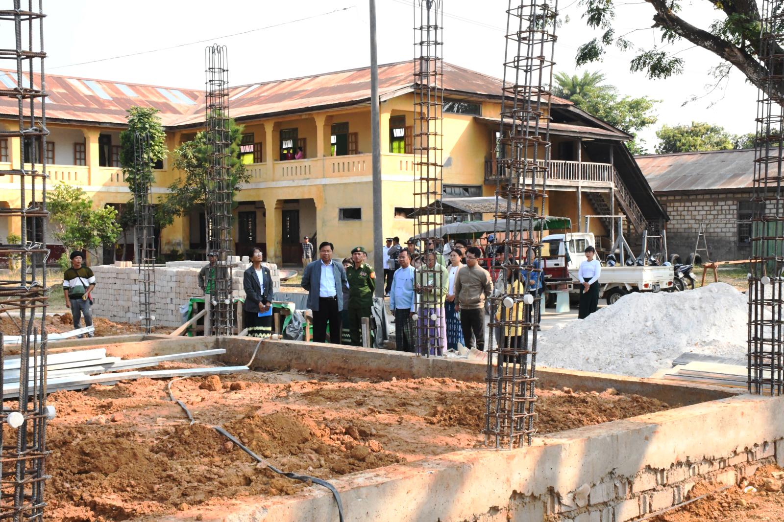 ဦးစွာ ပြည်နယ်ဝန်ကြီးချုပ်နှင့် တာဝန်ရှိသူများသည် အမှတ်(၂)အခြေခံပညာအထက်တန်း ကျောင်းဝင်းအတွင်း ၂၀၂၅-၂၀၂၆ ဘဏ္ဍာရေးနှစ် ပြည်ထောင်စုဘဏ္ဍာရန်ပုံငွေဖြင့် RCC တစ်ထပ် သိပ္ပံဆောင်နှင့် RCC တစ်ထပ် စာကြည့်တိုက်ဆောက်လုပ်နေမှုတို့ကို ကြည့်ရှုစစ်ဆေးသည်။