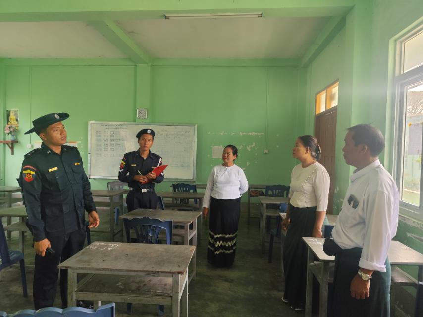 ထိုသို့ ကွင်းဆင်းစစ်ဆေးရာတွင် မြို့နယ်မီးသတ်ဦးစီးမှူး ဦးအောင်သူနှင့် တပ်ဖွဲ့ဝင်များ၊ မြို့နယ်ပညာရေးမှူးနှင့် ဆရာ၊ ဆရာမများပူးပေါင်း၍ မြို့နယ်အတွင်းရှိ တက္ကသိုလ်ဝင်တန်းစာမေးပွဲဖြေဆိုမည့် ကျောင်းများတွင် ကျောင်းသား၊ ကျောင်းသူများ စိတ်အေးချမ်းသာစွာ ဖြေဆိုနိုင်ရေးနှင့် မီးဘေးအန္တရာယ်ကင်းဝေးစေရေးအတွက် မီးသတ်ဆေးဘူးထားရှိမှုနှင့် ရေလှောင်ကန်များ ထားရှိမှုစစ်ဆေးခြင်း၊ လျှပ်စစ်ဝါယာကြိုများ သွယ်တန်းထားရှိမှုများနှင့် မီးခလုတ်များ စစ်ဆေးခြင်းများကိုဆောင်ရွက်၍ မီးဘေးအန္တရာယ် ကြိုတင်ကာကွယ်နိုင်ရေးအတွက် လိုအပ်သည်များကို အကြံပြုခဲ့ကြောင်း သိရသည်။