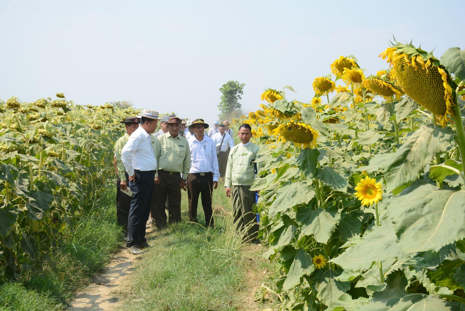 ရှေးဦးစွာ ဧရာဝတီတိုင်းဒေသကြီးဝန်ကြီးချုပ် ဦးတင်မောင်ဝင်းနှင့်တာဝန်ရှိသူများသည် မြို့မရပ်ကွက်၊ နန်းဦးဆိပ်အနီး ကွင်းအမှတ် ၁၈၉၆၊ ၅(က) တောင်သူ ဦးထွန်းလင်းပါ တောင်သူ ၂၀ ဦး စိုက်ပျိုးထားသည့် Suppersun-41 ဆောင်းနေကြာစိုက်ခင်း ၅၁ ဧကသို့ ရောက်ရှိပြီး တောင်သူ များနှင့် ရင်းရင်းနှီးနှီး တွေ့ဆုံကာ နေကြာအပြင်၊ ပဲပုတ်တို့ကို စိုက်ပျိုး၍ ပြည်တွင်းဆီဖူလုံစေရေးကို တောင်သူများအနေဖြင့် ကြိုးစားစိုက်ပျိုးသွားကြရန်၊ အခြားသီးနှံများကို စိုက်ပျိုးသွားရန် ပြောကြား သည်။ ထို့နောက် နေကြာခင်းအတွင်း နေကြာ အပွင့်အဆံများအောင်မြင်ဖြစ်ထွန်းမှုကို ကြည့်ရှုကြပြီး၊ ရွာသစ်ရပ်ကွက်၊ ကွင်းအမှတ် ၁၈၉၆၊ ၅(ခ)ရှိ တောင်သူ ဦးအောင်သန်း ပါတောင်သူ(၂၀)ဦး၏ ၃၀ ဧက ဆင်းရွှေကြာ-၂ နေကြာစိုက်ခင်းစိုက်ပျိုးထားရှိမှု အခြေအနေများအား ကြည့်ရူစစ်ဆေးကြာကာ ခရိုင်စီမံခန့်ခွဲရေးနှင့်အုပ်ချုပ်ရေးကော်မတီဥက္ကဋ္ဌ ဦးမျိုးလှိုင်နှင့် မြို့နယ်စီမံခန့်ခွဲရေးနှင့်အုပ်ချုပ်ရေး ကော်မတီဥက္ကဋ္ဌ ဦးဝင်းလှိုင်တို့က ကြံခင်းမြို့နယ်အတွင်း နေကြာနှင့် အခြားသီးနှံများ စိုက်ပျိုး ထားရှိမှုအားတင်ပြကြရာ ဝန်ကြီးချုပ်က လိုအပ်သည်များကို လမ်းညွှန်မှာကြားခဲ့ကြောင်း သိရသည်။