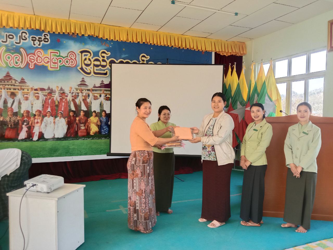 ဆွေးနွေးပွဲအပြီးတွင် မြို့နယ်အမျိုးသမီးရေးရာဥက္ကဋ္ဌ ဒေါ်နန်းခမ်းဆွေက အဖွဲ့ဝင်များနှင့် ရုံးဝန်ထမ်းများအား တူညီဝတ်စုံများ ထောက်ပံ့ပေးအပ်ခဲ့ကြောင်း သိရသည်။