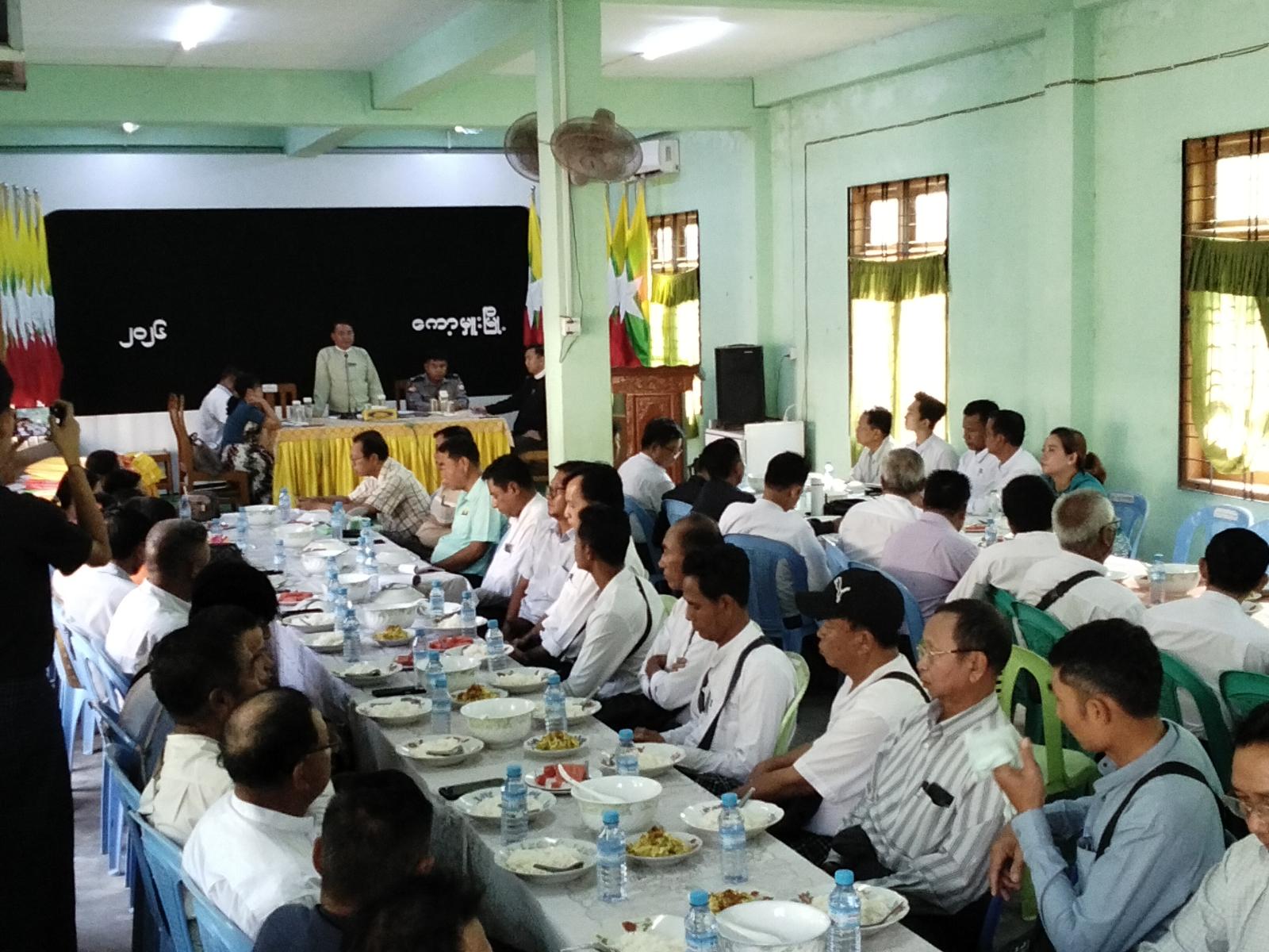 ထို့နောက် ဌာနဆိုင်ရာများ ရပ်ကွက်/ကျေးရွာအုပ်ချုပ်ရေးမှူးနှင့် လုပ်ငန်းညှိနှိုင်းအစည်းအဝေးအားကျင်းပခဲ့ရာ အစည်းအဝေးတွင် မြို့နယ်စီမံခန့်ခွဲရေးနှင့် အုပ်ချုပ်ရေးကော်မတီဥက္ကဋ္ဌ ဦးမျိုးမင်းနှင့် အဖွဲ့ဝင်များက လုံခြုံရေးဆိုင်ရာလုပ်ငန်းများအား အထူးအလေးထားဆောင်ရွက်ရန် မီးဘေးကြိုတင်ကာကွယ်ရေး ပုံမှန်စစ်ဆေးဆောင်ရွက်သွားရန် ဓါတ်မြေသြဇာ/ မျို့စေ့ချကရိယာဖိုးကြွေးကျန်များ အမြန်ကောက်ခံပေးသွင်းရန် ပွဲမိန့်တင်ပြလာမှုအပေါ် စနစ်တကျစိစစ်တင်ပြရန် စစ်မှုထမ်းဆင့်ခေါ်ရေးကိစ္စများအား ညွှန်ကြားချက်များအတိုင်း တိကျစွာလိုက်နာဆောင်ရွက်ရန်၊ စိုက်ဘဏ်ကြွေးကျန်များ ပေးဆပ်နိုင်ရေးကြတ်မတ်ဆောင်ရွက်ရန် ကိစ္စရပ်များအား အသေးစိတ်ရှင်းလင်းဆွေးနွေးခဲ့ကြောင်း သိရသည်။