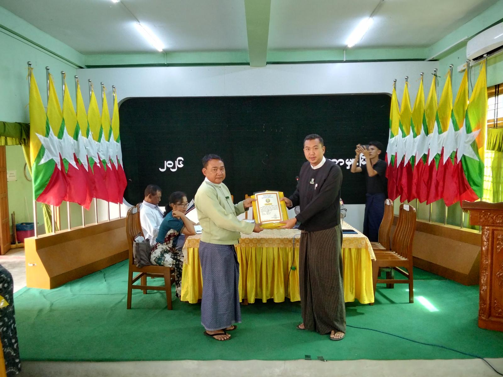 ဆက်လက်၍ မြို့နယ်စီမံခန့်ခွဲရေးနှင့် အုပ်ချုပ်ရေးကော်မတီဥက္ကဋ္ဌနှင့် အဖွဲ့ဝင်များမှ ဂုဏ်ပြုချီးမြှင့်ငွေနှင့်အတူ ဂုဏ်ပြုမှတ်တမ်းလွှာအား ဌာနဆိုင်ရာများ ရပ်ကွက်/ ကျေးရွာ အုပ်စုအုပ်ချုပ်ရေးမှူးများသို့ ပေးအပ်ခဲ့ပြီး အခမ်းအနားတက်ရောက်လာသူများအား နေ့လယ်စာဖြင့် ဧည့်ခံကျွေးမွေးခဲ့ပါကြောင်း သိရသည်။
