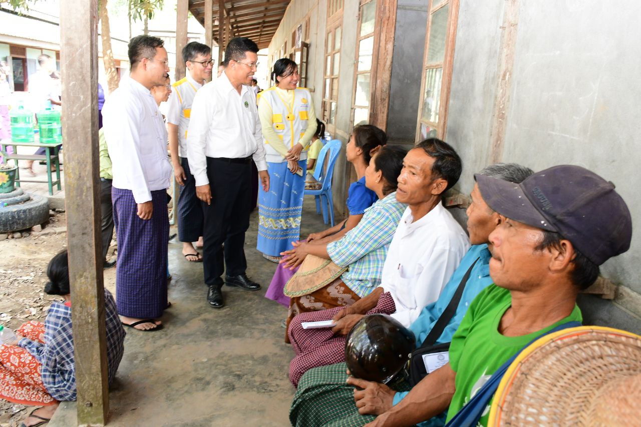 ဦးစွာ တိုင်းဒေသကြီးဝန်ကြီးချုပ်နှင့် အဖွဲ့သည် မြန်အောင်မြို့နယ်၊ အင်ပင်မြို့ အခြေခံပညာအထက်တန်းကျောင်းတွင် ဟင်္သာတမြို့၊ ပြည်သူ့ဆေးရုံမှ ဆေးရုံအုပ်နှင့် အထူးကုဆရာဝန်များ ပါဝင်သော ကျန်းမာရေးဝန်ထမ်းများသည် ဒေသခံပြည်သူများအား အခမဲ့ကျန်းမာရေးစောင့်ရှောက်မှုများ ဆောင်ရွက်ပေးနေမှုအား ကြည့်ရှုအားပေးပြီး လာရောက်ကုသသော ဒေသခံပြည်သူများအား အာဟာရဖြည့်စားသောက်ဖွယ်ရာများ ပေးအပ်ခဲ့သည်။ အဆိုပါဆေးကုသမှုအစီအစဉ်တွင် အထွေထွေရောဂါလူနာ (၁၄၆) ဦး၊ အရိုးလူနာ (၉၅) ဦး၊ အကြောအဆစ် (၃၇) ဦး၊ ခွဲစိတ်လူနာ (၁၂) ဦး၊ သားဖွားမီးယပ်လူနာ (၁၃) ဦး၊ ကလေးလူနာ (၁၈) ဦး၊ သွားနှင့် ခံတွင်းလူနာ (၁၈) ဦး၊ စိတ်ကျန်းမာရေးလူနာ (၆) ဦး၊ နား၊ နှာခေါင်း၊ လည်ချောင်းလူနာ (၃၆) ဦး၊ အရေပြားလူနာ (၅၇) ဦး၊ မျက်စိလူနာ (၁၆၉) ဦး စုစုပေါင်းလူနာ (၆၀၇) ဦးနှင့် ညွှန်းပို့လူနာ ကျား ၃၂ ဦး၊ မ၃၁ ဦး ၊ ECG ကျား ၃ဦး၊ မ ၆ ဦးတို့အား အခမဲ့ကျန်းမာရေးစောင့်ရှောက်မှုပေးခဲ့ပါကြောင်းနှင့် ကျန်းမာရေးအသိပညာပေးခြင်းလုပ်ငန်းများ ဆောင်ရွက်ခဲ့သည်။