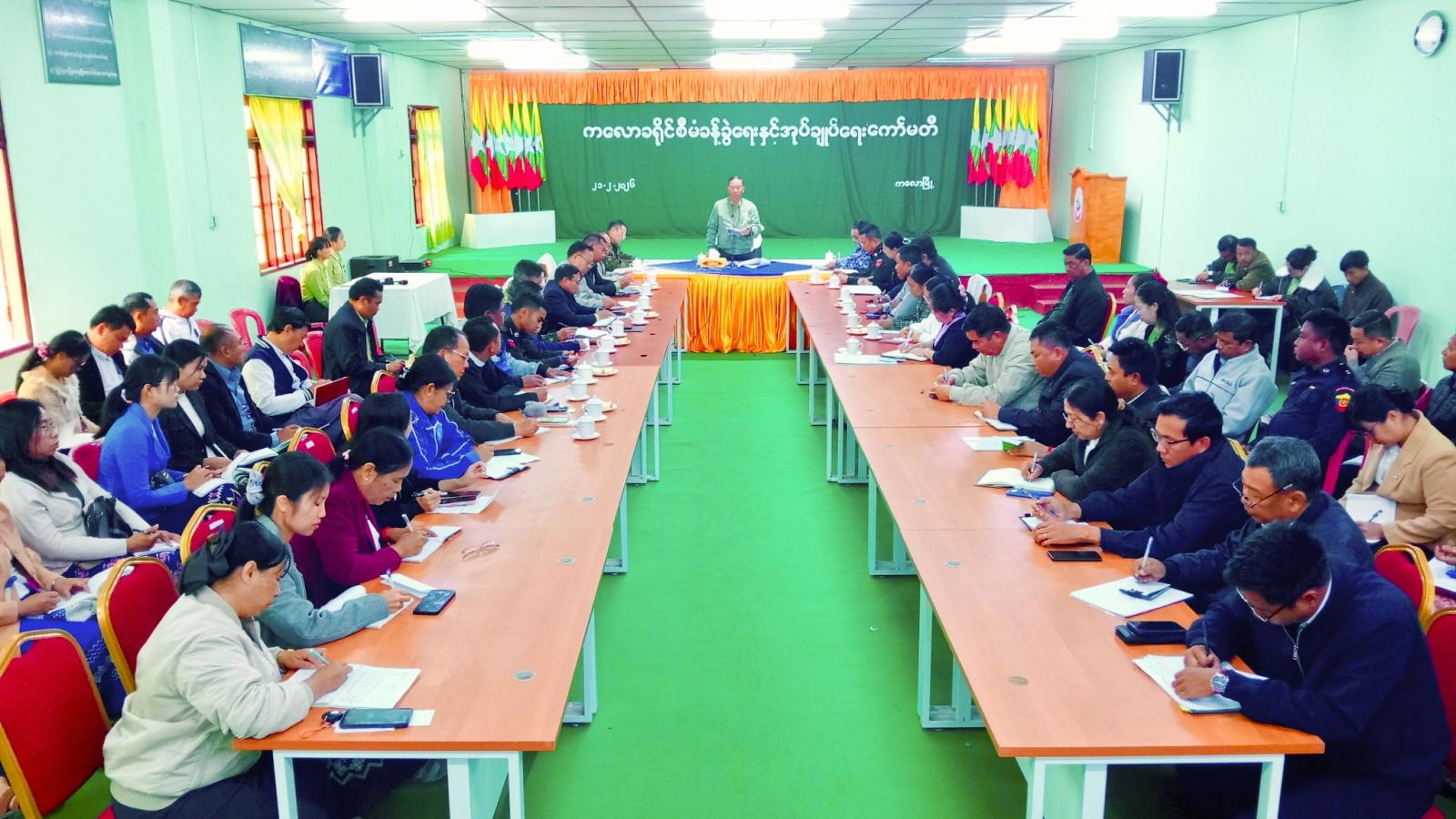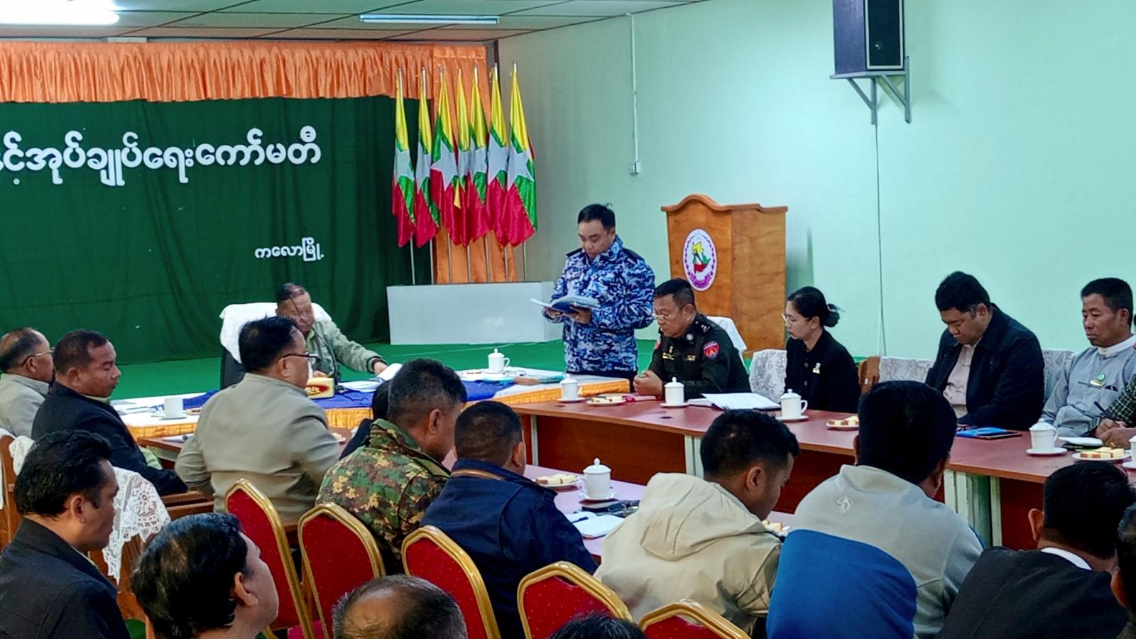 ရှမ်းပြည်နယ်တောင်ပိုင်း ကလောခရိုင် အထွေထွေအုပ်ချုပ်ရေးဦးစီးဌာန အစည်းအဝေးခန်းမ၌ ယမန်နေ့ နံနက် ၉ နာရီခွဲက ခရိုင်စီမံခန့်ခွဲရေးနှင့် အုပ်ချုပ်ရေးကော်မတီ၏ လုပ်ငန်းညှိနှိုင်းအစည်းအဝေးကျင်းပခဲ့ရာ ခရိုင်၊ မြို့နယ်အဆင့်ဌာနဆိုင်ရာများ တက်ရောက်ခဲ့သည်။