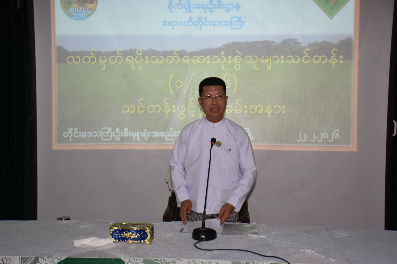 ဦးစွာ တိုင်းဒေသကြီးဝန်ကြီးချုပ်က လက်မှတ်ရပိုးသတ်ဆေးသုံးစွဲသူများသင်တန်း (၁/၂၀၂၆)ကို ပိုးသတ်ဆေးဥပဒေအား သက်ဝင်လှုပ်ရှားစေရန်၊ ပိုးသတ်ဆေးနှင့် ပိုးသတ်ဆေးဓာတ်ကြွင်းအန္တရာယ်ကိုသိရှိနားလည်ပြီး စနစ်တကျ ကိုင်တွယ်သုံးစွဲတတ်စေရန်၊ ဘက်စုံသီးနှံကာကွယ်ရေးလုပ်ငန်းစဉ်တွင် ဓာတုနည်းဖြင့် ကာကွယ်နှိမ်နင်းခြင်းလုပ်ငန်း ထိရောက်အောင်မြင်စေရန်၊ ဘေးကင်းလုံခြုံစိတ်ချရသော စားသုံးသီးနှံများ စိုက်ပျိုးထုတ်လုပ်နိုင်ရေးနှင့် သဘာဝပတ်ဝန်းကျင်မပျက်စီးစေပဲ ရေရှည်စိုက်ပျိုးထုတ်လုပ်နိုင်ရေးကို အထောက်အကူပြုစေရန် စသည့်ရည်ရွယ်ချက်များနှင့် ဖွင့်လှစ်ခြင်းဖြစ်ပါကြောင်း၊ ယခုဖွင့်လှစ်သည့်သင်တန်းမှ သင်ကြားပို့ချလိုက်သည့် နည်းပညာများကို လေ့လာမှတ်သားပြီး တိတိကျကျလိုက်နာကျင့်သုံးကာ သီးနှံအထွက်တိုးရေးကို အထောက်အကူဖြစ်အောင် ဆောင်ရွက်ပေးကြရန် လိုအပ်မည်ဖြစ်ပါကြောင်း၊ ယခုတက်ရောက်လာသည့် သင်တန်းသားများအနေဖြင့် မိမိတို့လေ့လာသင်ယူမှတ်သားရရှိသည့် အတွေ့အကြုံ၊ ဗဟုသုတ၊ ပညာရပ်တွေကို မိမိတိုးနှင့်နီးစပ်ရာ တောင်သူများ၊ စိုက်ပျိုးထုတ်လုပ်သူများသာမက ရောင်းဝယ်ဖောက်ကားနေကြသည့် ပုဂ္ဂိုလ်များအထိ ပညာဗဟုသုတများ မျှဝေပေးကြရန်လိုပါကြောင်း အမှာစကားပြောကြားခဲ့သည်။
