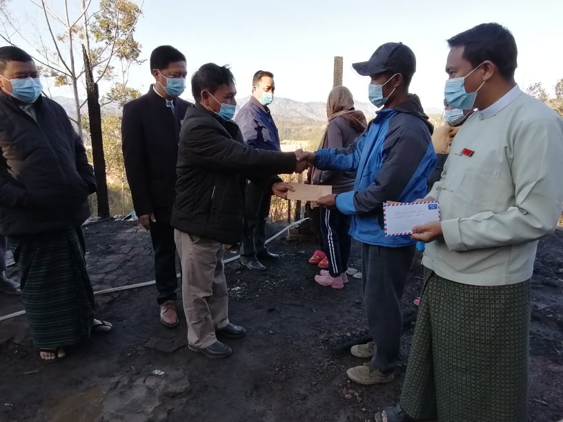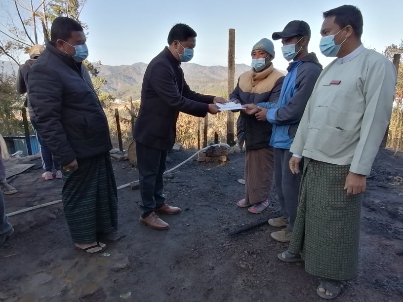 အဆိုပါ ထောက်ပံ့ငွေပေးအပ်ခြင်းတွင် ချင်းပြည်နယ်အစိုးရအဖွဲ့ရုံးမှ သေဆုံးသူ၏ ကျန်ရစ်သူမိသားစုဝင်များ အတွက် ထောက်ပံ့ငွေကျပ်(၃)သိန်း၊ မီးဘေးသင့်အိမ်ထောင်စု (၃)စုအတွက် အိမ်ထောင်စု (၁) စုလျှင် ထောက်ပံ့ငွေကျပ် (၃) သိန်းနှုန်းဖြင့် ထောက်ပံ့ငွေကျပ်စုစုပေါင်း (၁၂) သိန်း ၊ ပြည်နယ် ဘေးအန္တရာယ်ဆိုင်ရာ စီမံခန့်ခွဲမှုဦးစီးဌာနမှ သေဆုံးသူ၏ ကျန်ရစ်သူမိသားစုဝင်များအတွက် ထောက်ပံ့ငွေကျပ် (၃) သိန်း၊ မီးဘေးသင့် အိမ်ထောင်စု (၃)စုအတွက် အိမ်ထောင်စု (၁) စုလျှင် ထောက်ပံ့ငွေကျပ် (၂) သိန်းနှုန်းဖြင့် လည်းကောင်း၊ ဆန်ရိက္ခာအတွက် ငွေကျပ် (၂၁၀၀၀) ထောက်ပံ့ငွေကျပ် စုစုပေါင်း (၉၂၁၀၀၀) နှင့် မီးဘေးသင့် အိမ်ထောင်စု (၃) စုအတွက် ကယ်ဆယ်ရေးပစ္စည်း (၁၇) မျိုးကို ထောက်ပံ့ပေးအပ်ခဲ့ကြကြောင်း သိရှိရသည်။
