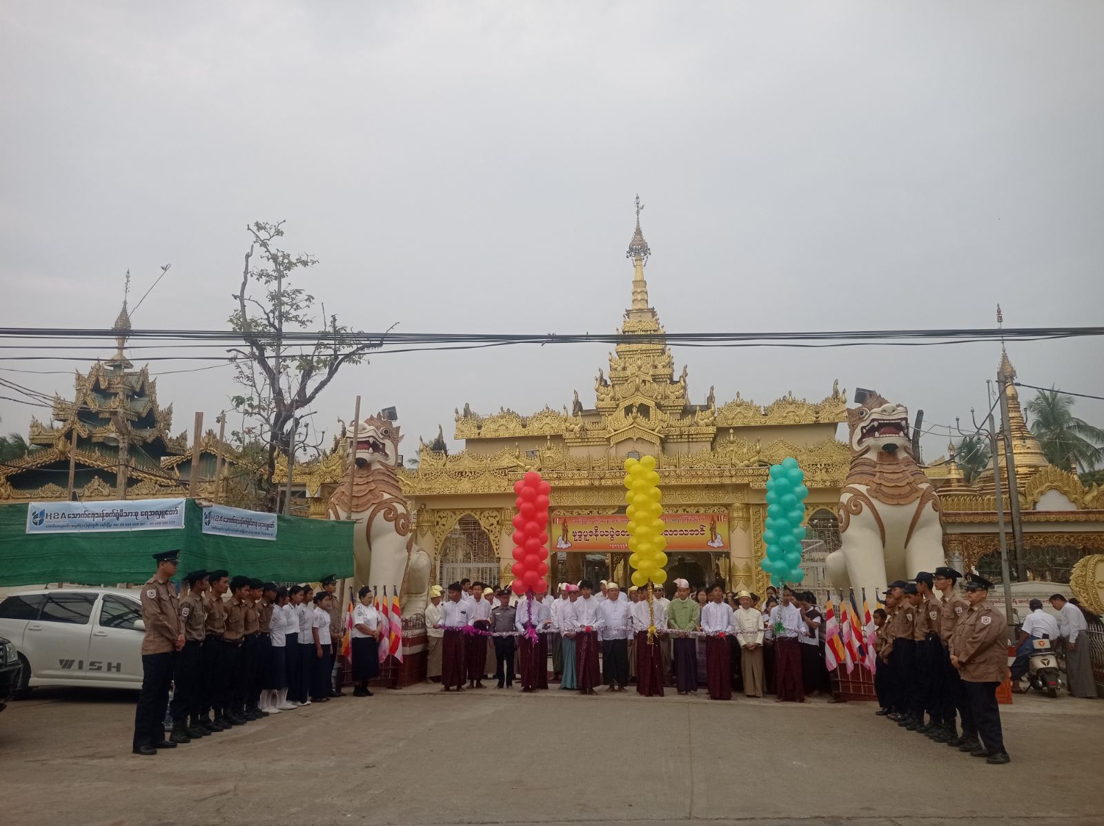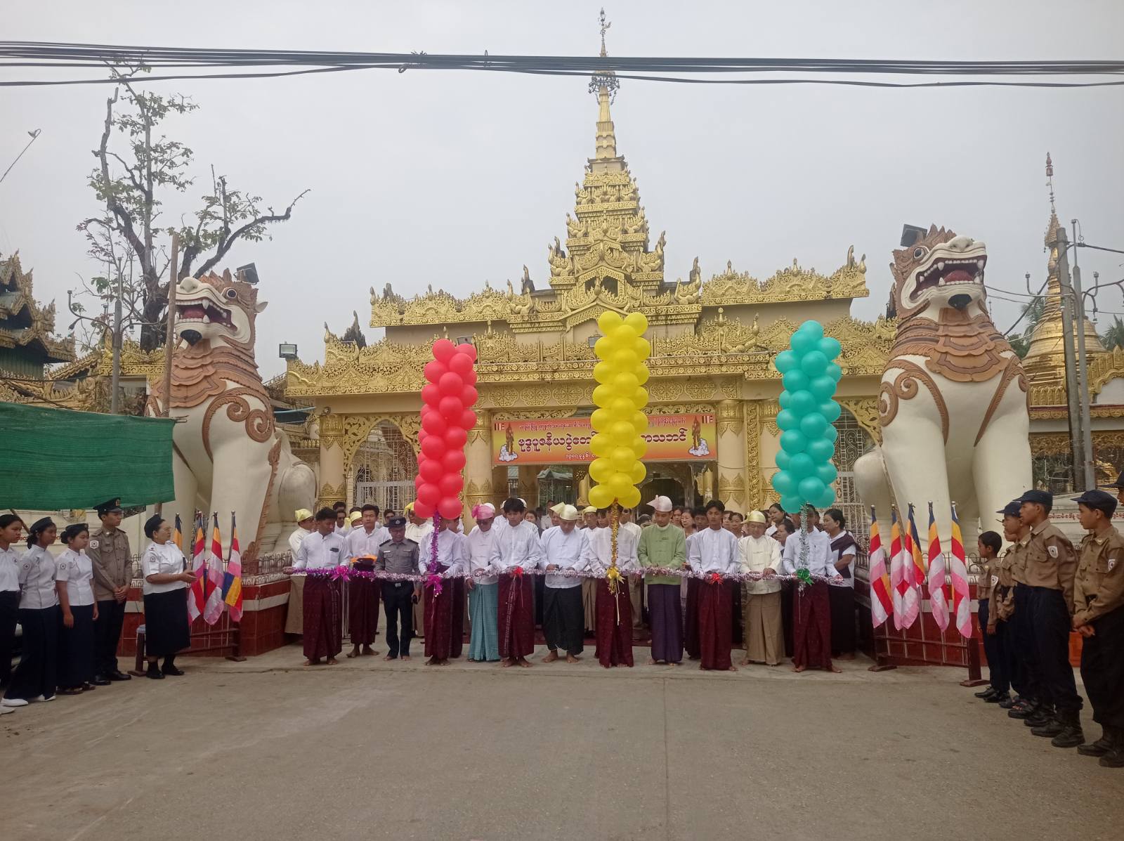 အခမ်းအနားသို့ မြို့နယ်စီမံခန့်ခွဲရေးနှင့်အုပ်ချုပ်ရေးကော်မတီဥက္ကဋ္ဌ ဦးအောင်ရဲနှင့် အဖွဲ့ဝင်များ ၊သကျမာရဇိန် သွန်းဘုရားကြီး၏ ဘဏ္ဍာတော်ထိမ်းဂေါပကဥက္ကဋ္ဌ ဦးတင်အေးနှင့် အဖွဲ့ဝင်များ၊ ရောင်တော်ဖွင့်အဖွဲ့ဝင်များ၊ မြို့နယ်ဝတ်အသင်းအဖွဲ့များ၊ မြို့နယ်ကြက်ခြေနီအသင်း၊ မီးသတ်တပ်ဖွဲ့ဝင်များ အလှူရှင်မိသားစုများတက်ရောက်၍ ဖဲကြိုးဖြတ်ဖွင့်လှစ်ပေးခဲ့ကြောင်း သိရသည်။