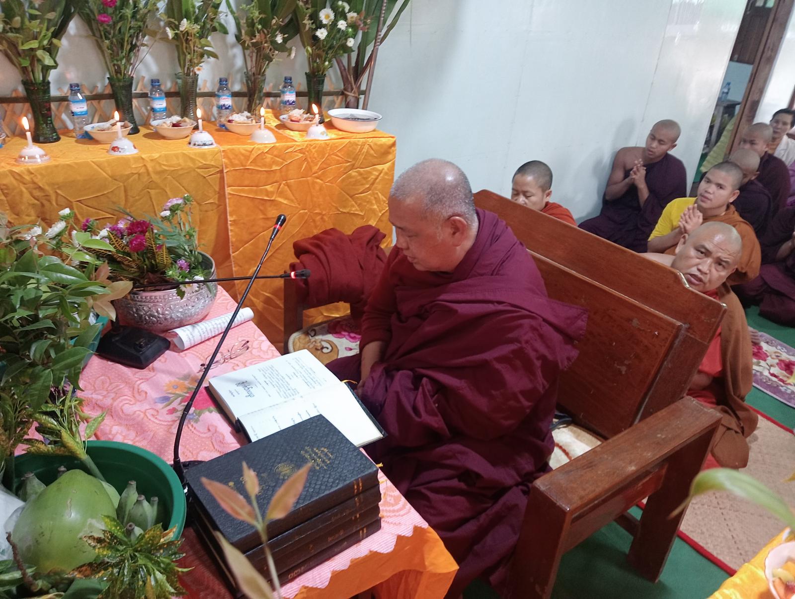 ရှေးဦးစွာ အခမ်းအနားကို နမောတဿသုံးကြိမ်သံပြိုင်ရွတ်ဆို ဘုရားကန်တော့၍ ဖွင့်လှစ်ပြီး မြို့နယ်သံဃနာယကဥက္ကဋ္ဌ ဆရာတော်မှ ရောင်ခြည်တော်ဖွင့်ဂါထာဖြင့်လည်းကောင်း၊ အကျိုးတော်ဆောင်ဆရာတော်က ဗုဒ္ဓဝန္ဒနာဂါထာတော်ဖြင့်လည်းကောင်း ရွတ်ဖတ်ပူဇော်ခဲ့ကြပြီး ကမ္မဋ္ဌာန်းတိုက်ဆရာတော်က အဘိဓမ္မာတရားတော်နာကြားရန် နတ်ဗြဟ္မာများအားပင့်ဖိတ်ခဲ့ပြီး ကုန်းပေါင်းဆရာတော်က အဘိဓမ္မာဒေသနာ တော်ရွတ်ဖတ်ပူဇော်ရန် တိုက်တွန်းနိုးဆော်လွှာဂါထာဖြင့်လည်းကောင်း ရွတ်ဖတ်ပူဇော်ပြီး အဘိဓမ္မာဘာဏကဆရာတော်သံဃာတော်များ၊ လူပရိတ်သတ်များက ပဌာန်းပစ္စယုဒ္ဒေသကို (၃) ကြိမ်တိုင်တိုင် သံပြိုင်ရွတ်ဆိုခဲ့၍ ဓမ္မသင်္ဂဏီကျမ်းတော်မြတ်မှ စတင်ကာ သံယာတော် (၂၇) ပါးတို့ဖြင့် ရွတ်ဖတ်ပူဇော်ပြီးအဘိဓမ္မာ (၇) ကျမ်းအား ၅ရက်တိုင်တိုင် နေ့/ညအသံမစဲရွတ်ဖတ် ပူဇော်သွားမည်ဖြစ်ကြောင်း မြို့နယ်သံဃနာယကဥက္ကဋ္ဌ ဆရာတော်ထံမှ သိရသည်။