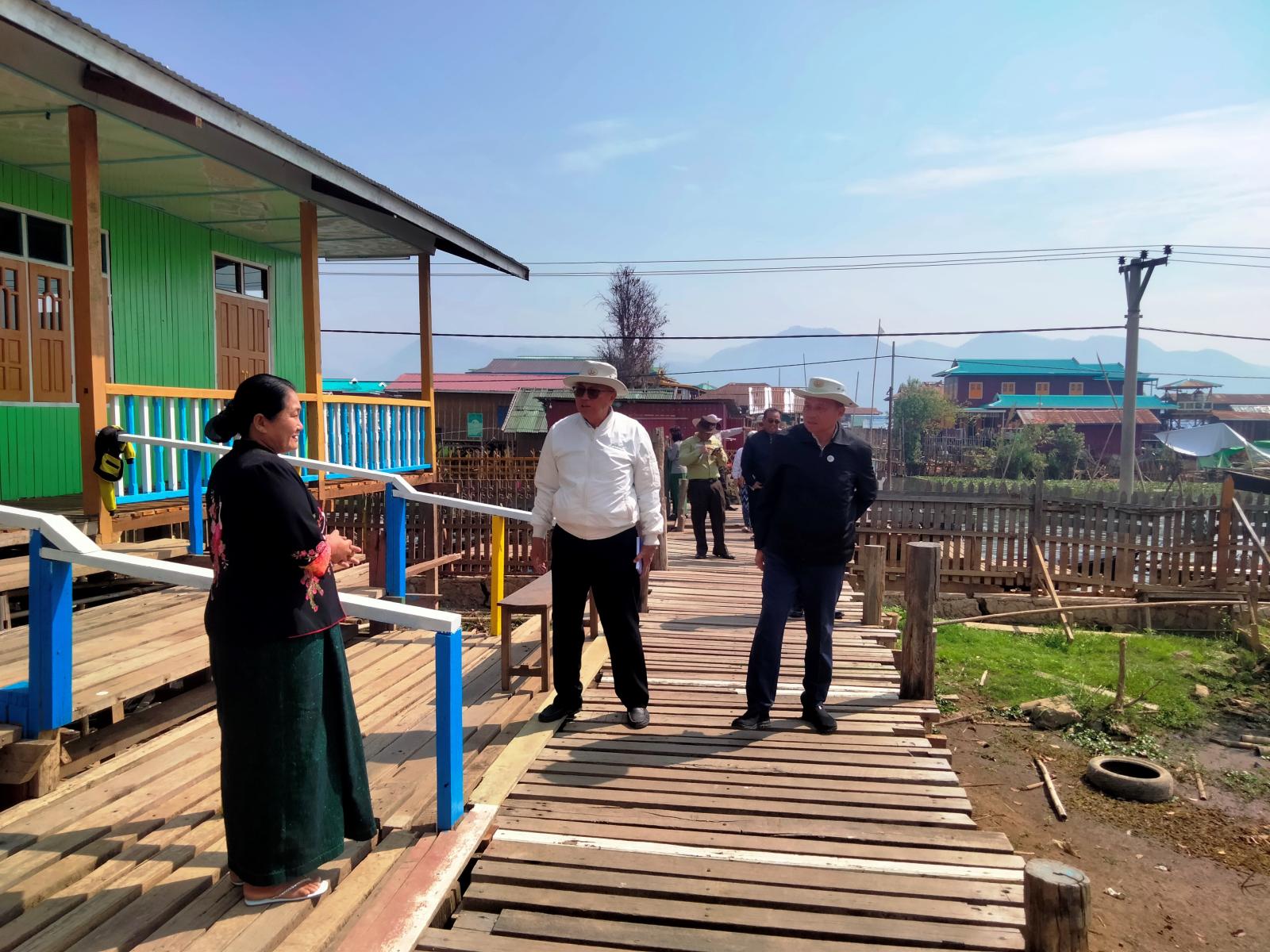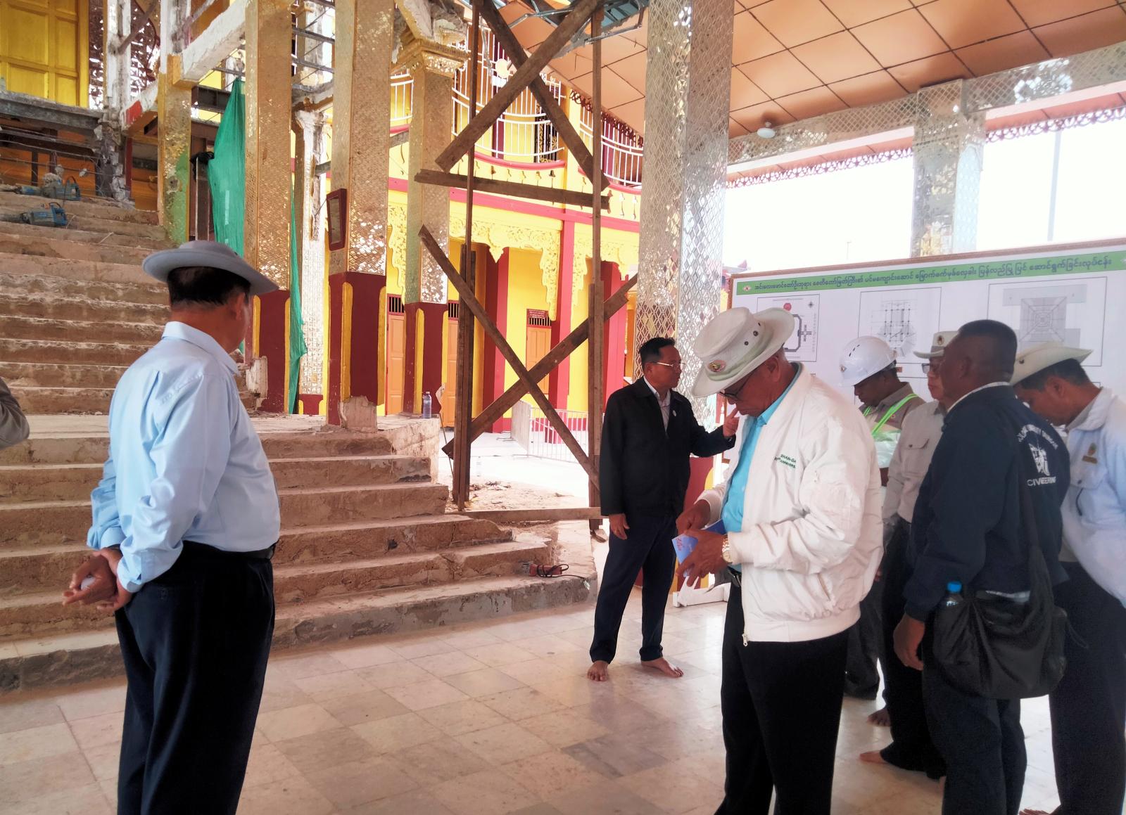 ရှမ်းပြည်နယ်အစိုးရအဖွဲ့ ပြည်နယ်လမ်းပန်းဆက်သွယ်ရေးဝန်ကြီး ဦးနေဝင်းအောင်သည် ပြည်နယ်တိုင်းရင်းသားရေးရာဝန်ကြီး ဦးအောင်ကြည်ဝင်းနှင့်အတူ ယနေ့နံနက်ပိုင်းက ညောင်ရွှေမြို့နယ် အင်းလေးဖောင်တော်ဦးမြတ်စွာဘုရား ရတနာစံကျောင်းတော်သို့ ရောက်ရှိပြီး ကျောင်းတော်မြောက်ဘက်မုခ်လှေခါး ပြင်ဆင်ဆောင်ရွက်နေမှုကို ကွင်းဆင်းကြည့်ရှုစစ်ဆေးရာ တာဝန်ရှိသူများက လုပ်ငန်းဆောင်ရွက်ပြီးစီးမှုအခြေအနေများကို ရှင်းလင်းတင်ပြခဲ့သည်။