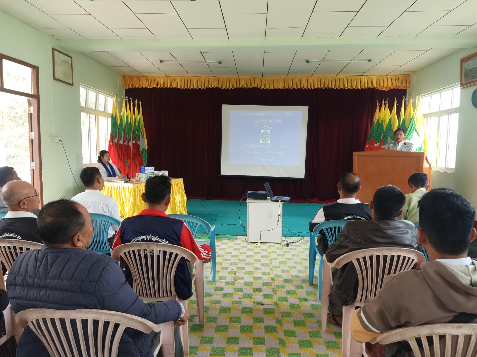 ရှမ်းပြည်နယ်(အရှေ့ပိုင်း)၊ ကျိုင်းတုံခရိုင်၊ မိုင်းပျဉ်းမြို့၊ ဘေးအန္တရာယ်ဆိုင်ရာ စီမံခန့်ခွဲမှုဦးစီးဌာနမှ လေပြင်းဘေးဒဏ်ခံနိုင်ရေး အားဖြည့်မွမ်းမံပြင်ဆင်ခြင်းလုပ်ငန်းအတွက် ညှိနှိုင်းအစည်းအဝေးနှင့် ထောက်ပံ့ငွေပေးအပ်ခြင်းကို ယနေ့နံနက် ၁၀ နာရီက မြို့နယ်အထွေထွေအုပ်ချုပ်ရေးဦးစီးဌာန၊ အစည်းအဝေးခန်းမ၌ ကျင်းပပြုလုပ်ခဲ့ကြောင်း သိရသည်။