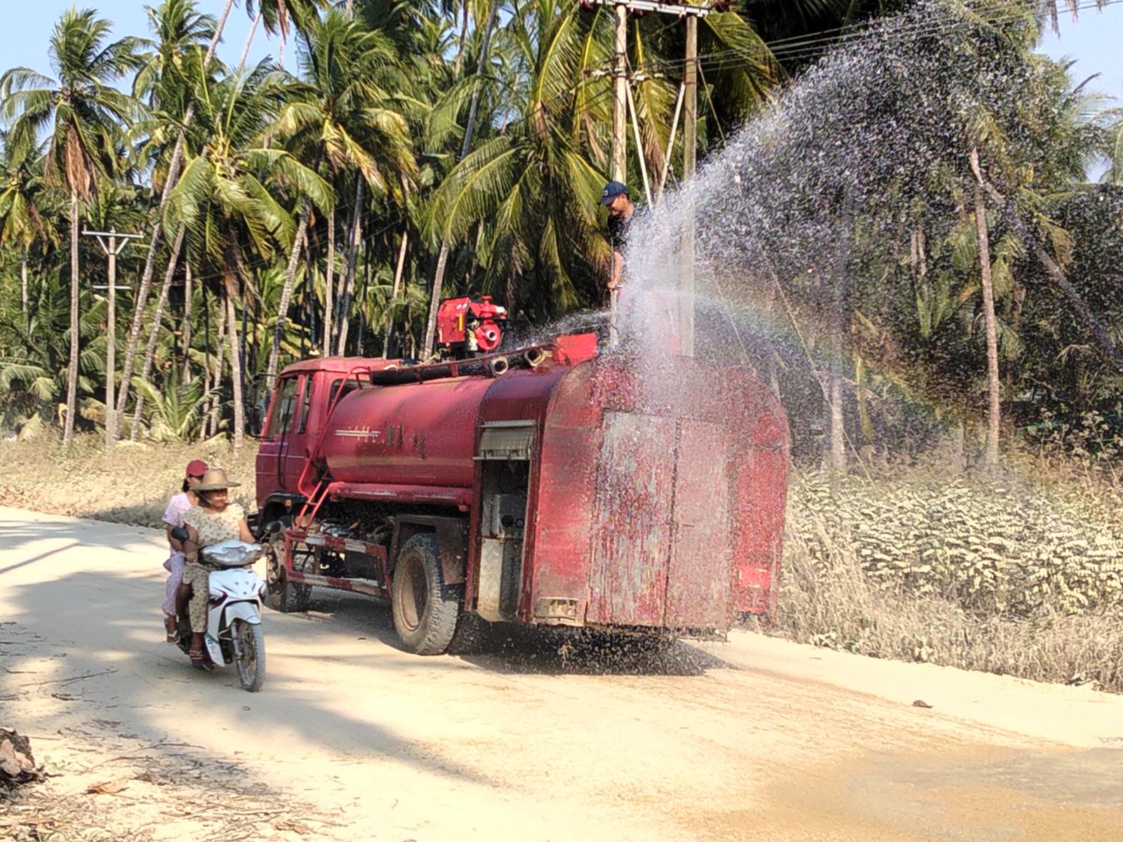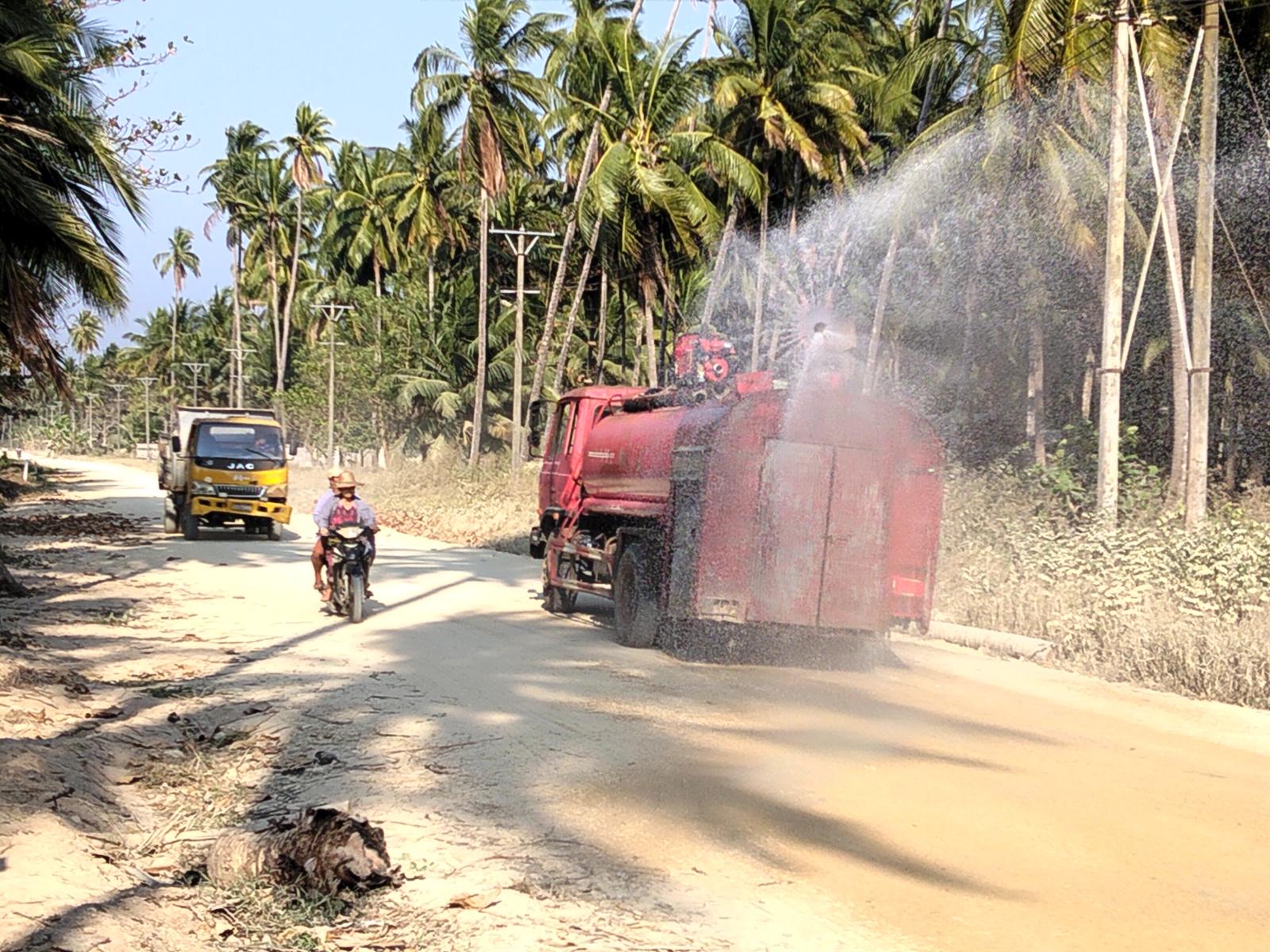 ဧရာဝတီတိုင်းဒေသကြီး၊ ပုသိမ်ခရိုင်၊ ရွှေသောင်ယံမြို့တွင်း ကမ်းခြေလမ်းမကြီးတစ် လျှောက်ရှိ အချို့မြေသားလမ်းပိုင်းနေရာများတွင် ကား၊ ဆိုင်ကယ် အစရှိသည့်မော်တော်ယာဥ်များသွားလာလှုပ်ရှားရာ၌ ဖုန်မှုန့်များထ၍ လမ်းဘေးရှိလူနေအိမ်များ၊ ရုံးဌာနများတို့တွင် ဖုန်မှုန့်များကြောင့်အခက်အခဲကြုံတွေ့နေရသဖြင့် ရွှေသောင်ယံမြို့ ၊ မြို့အုပ်ချုပ်ရေးမှူး၏အစီအစဉ်ဖြင့် တစ်နေ့နှစ်ကြိမ်ခန့်လမ်းမကြီးတစ်လျှောက် ရေဖြန်းခြင်းဖြင့် ဖုန်မှုန့်ထခြင်းမှကာကွယ်နိုင်ရန် ဆောင်ရွက်ခဲ့ကြသည်။