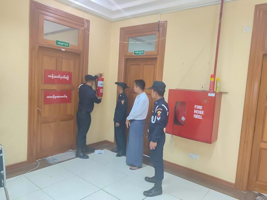 ရှမ်းပြည်နယ်(အရှေ့ပိုင်း)၊ တာချီလိတ်မြို့၌ ဘဏ်ဝန်ထမ်းများအား မီးဘေးအန္တရာယ်ကြိုတင်ကာကွယ်ရေးနှင့် မီးဘေးလုံခြုံမှုရှိစေရန်အတွက် မီးငြှိမ်းသတ်မှု လက်တွေ့သရုပ်ပြ လေ့ကျင့်ခြင်းကို ယနေ့မွန်းလွဲပိုင်းက မကာဟိုခမ်းရပ်ကွက် အင်းဝဘဏ်တွင် ကျင်းပသည်။