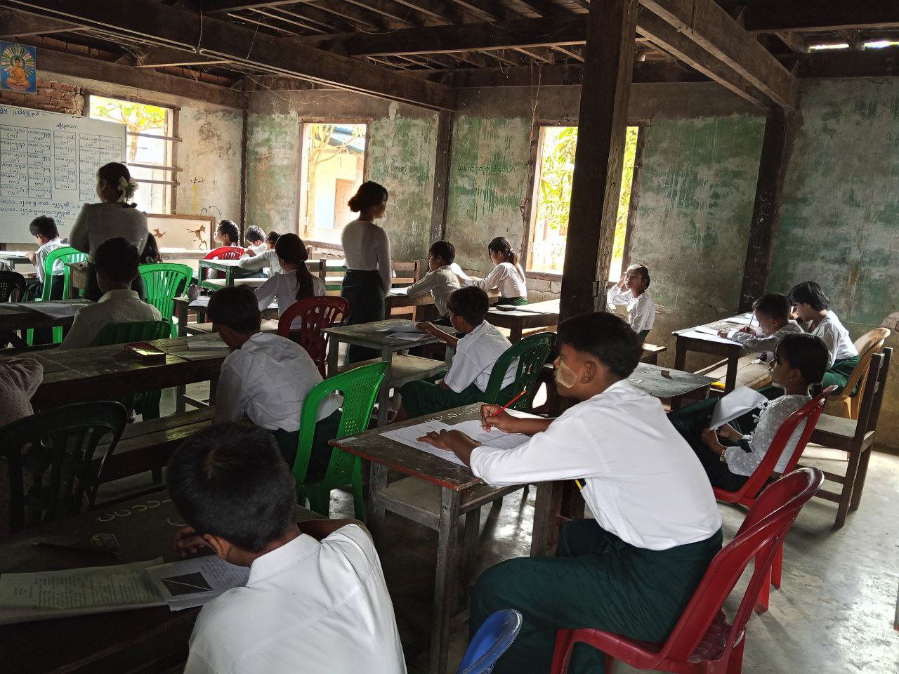 ဧရာဝတီတိုင်းဒေသကြီး ၊ ပုသိမ်ခရိုင် ၊ ငွေဆောင်မြို့၌ ၂၀၂၅ - ၂၀၂၆ ပညာသင်နှစ် ၊ Grade - 5နှင့် Grade - 9 နှစ်ဆုံးစာမေးပွဲ ၊ အင်္ဂလိပ်စာဘာသာရပ်အား ယနေ့နံနက် (၉း၀၀) နာရီက ဖြေဆိုရာ မြို့အုပ်ချုပ်ရေးမှူးမှ စာစစ်ဌာနရှိရာ ကျောင်းများသို့ သွား ရောက်၍ ကျောင်းသား/ သူများ၏ စာမေးပွဲ ဖြေဆိုနေမှု အခြေအနေကို ကြည့်ရှု အားပေးခဲ့ကြောင်း သိရသည်။