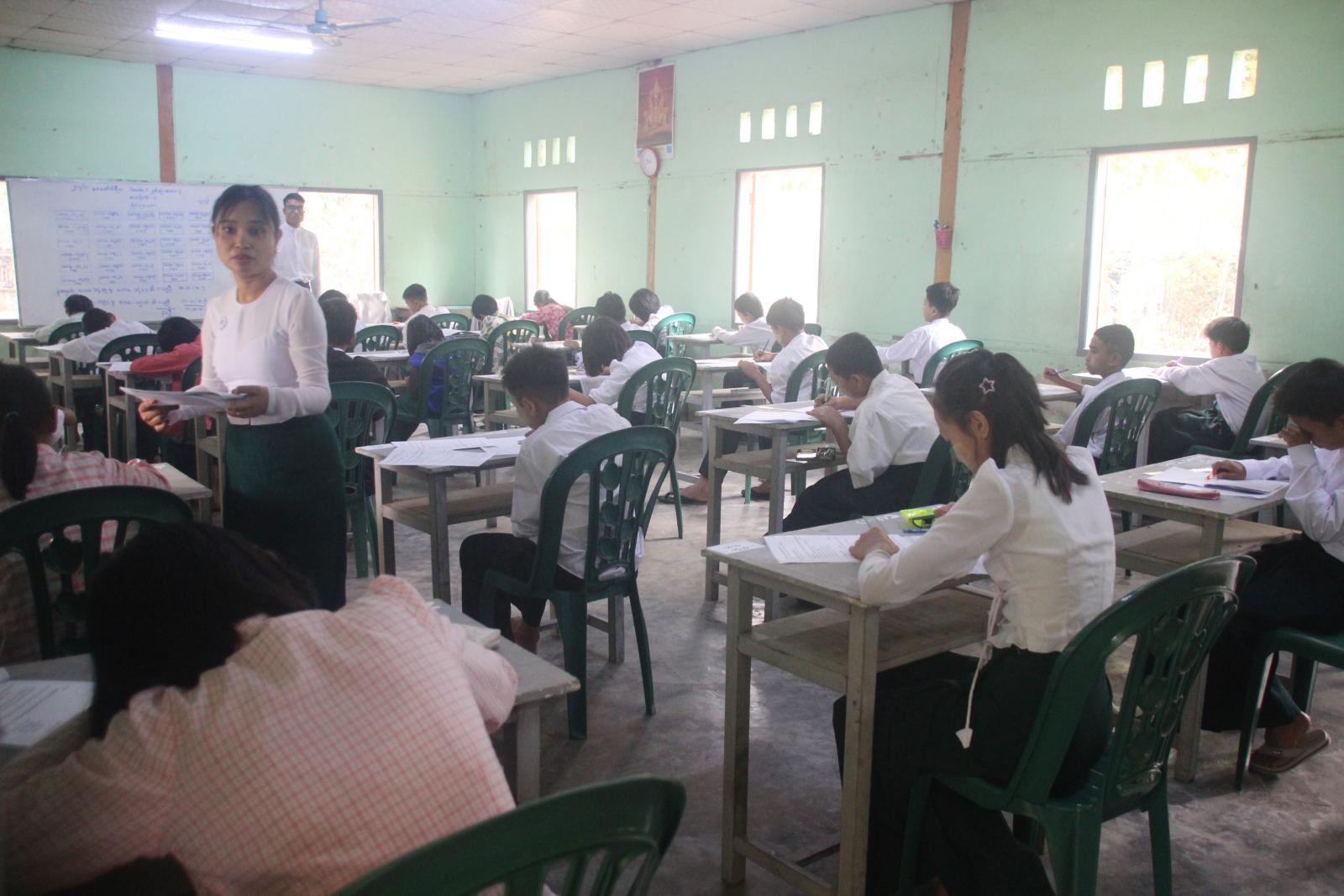 ဧရာဝတီတိုင်းဒေသကြီး၊ မြန်အောင်ခရိုင်၊ ကြံခင်းမြို့နယ်အတွင်းရှိ အခြေခံပညာကျောင်းများ၏ စာစစ်ဌာနများ၌ ယနေ့နံနက် ၉ နာရီအချိန်က စတင်၍ ၂၀၂၅-၂၀၂၆ ပညာသင်နှစ် Grade-5 နှင့် Grade-9 ကျောင်းသား၊ ကျောင်းသူများ နှစ်ဆုံးတတ်မြောက်မှုစစ်ဆေးခြင်း အင်္ဂလိပ်စာဘာသာရပ်ကို အေးချမ်းစွာဖြင့်ဖြေဆိုလျက်ရှိသည်။