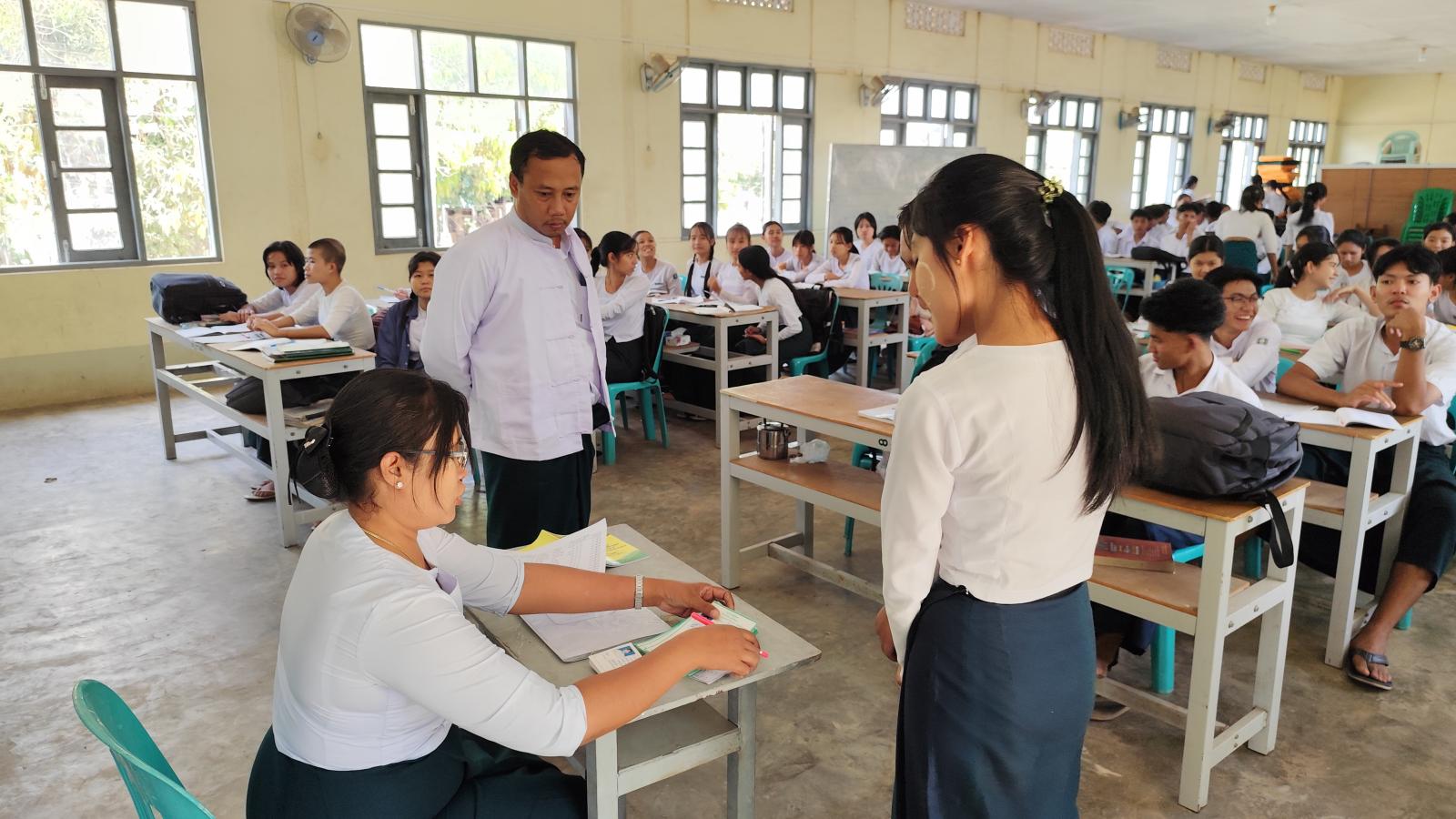မွန်ပြည်နယ်၊ ကျိုက်ထိုမြို့နယ်တွင် ၂၀၂၅-၂၀၂၆ ပညာသင်နှစ် Grade 12 တက္ကသိုလ်ဝင် စာမေးပွဲ ဝင်ရောက်ဖြေဆိုနိုင်ရန် ဖြေဆိုခွင့် ယာယီကတ်ပြားများအား ယမန်နေ့ နံနက်ပိုင်းမှ စတင်ပြီးသက်ဆိုင်ရာ အခြေခံပညာကျောင်းများ၌ ထုတ်ပေးလျက်ရှိသည်။