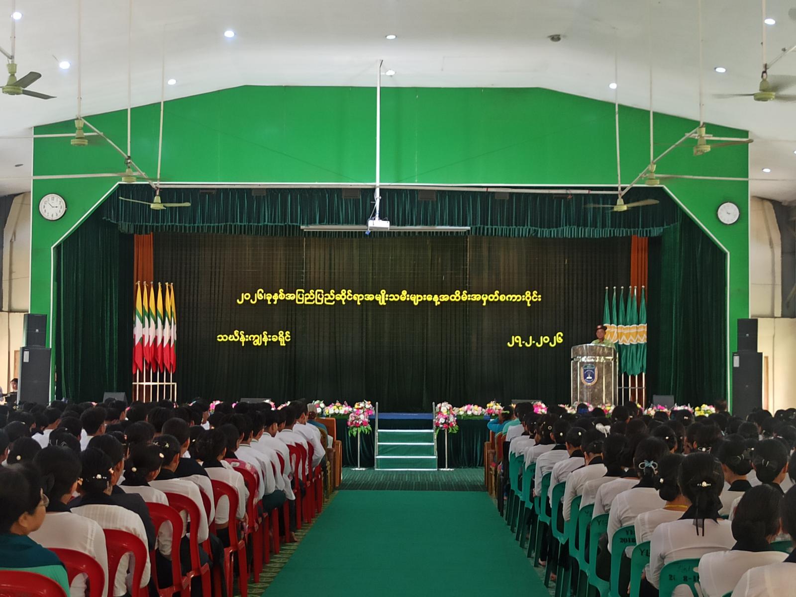 အခမ်းအနားသို့ သင်္ဃန်းကျွန်းခရိုင်အုပ်ချုပ်ရေးမှူး၊ ပညာရေးဒီဂရီကောလိပ် ကျောင်းအုပ်ကြီး၊ ပြန်ကြားရေးနှင့်ပြည်သူ့ဆက်ဆံရေးဦးစီးဌာန ခရိုင်ဦးစီးမှူး၊ ခရိုင်အမျိုးသမီးရေးရာအဖွဲ့ဥက္ကဋ္ဌနှင့်အဖွဲ့ဝင်များ၊ ရန်ကင်းမြို့နယ်အုပ်ချုပ်ရေးမှူး၊လူမှုဝန်ထမ်းဦးစီးဌာနမှ တာဝန်ရှိသူများနှင့် ခရိုင်အဆင့်၊ မြို့နယ်အဆင့်တာဝန်ရှိသူများ၊ ဖိတ်ကြားထားသည့် ဧည့်သည်များ၊ ကျောင်းသား/ကျောင်းသူများ စုစုပေါင်း ၃၀၀၀ ခန့် တက်ရောက်ခဲ့ကြောင်း သိရသည်။