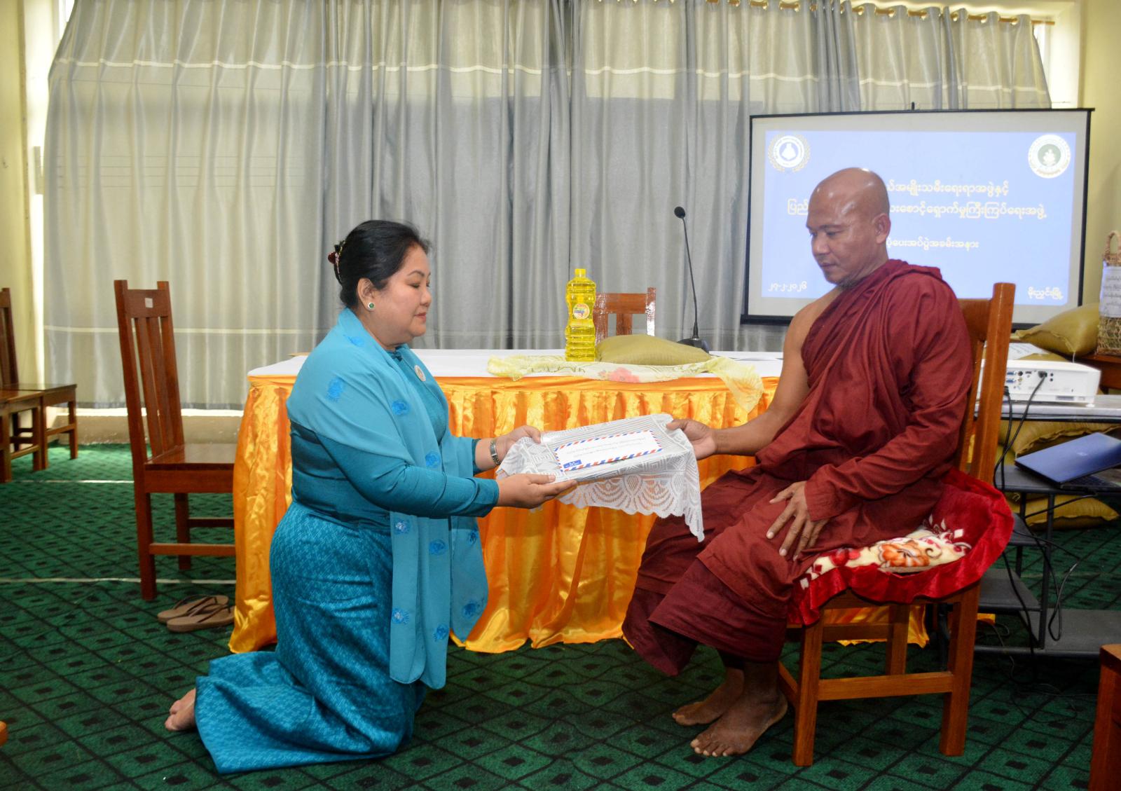 ထို့နောက် ကချင်ပြည်နယ် အမျိုးသမီးရေးရာအဖွဲ့နှင့် မိခင်နှင့်ကလေးစောင့်ရှောက်မှုကြီးကြပ်ရေးအဖွဲ့မှ နာယက ဒေါ်လဖိုင်နန်ဆိုင်းနှင့်အဖွဲ့သည် မိုးညှင်းမြို့ နားခါရပ်ကွက်ရှိ သာသနဟိတကာရီ သီလရှင်ကျောင်းတိုက်သို့သွားရောက်၍ သီလရှင်ဆရာကြီးများအား သာသနာရေးဆိုင်ရာများနှင့်ပတ်သက်၍ လျှောက်ထားပြီး သီလရှင်စာသင်သားများအတွက် အလှူငွေနှင့် ဆန်၊ ဆီ၊ ဆား၊ ဟင်းသီးဟင်းရွက်များကို လှူဒါန်းပေးအပ်ရာ သီလရှင်ဆရာကြီးက ဆုတောင်းမေတ္တာပို့သပေးခဲ့ကြောင်း သိရသည်။