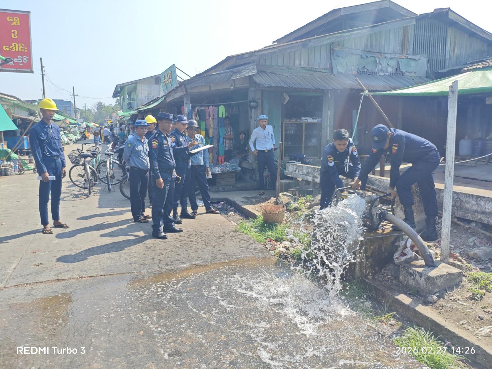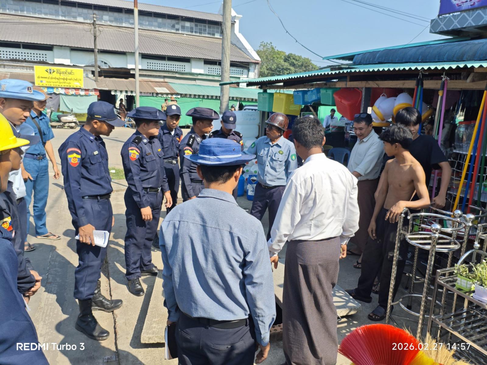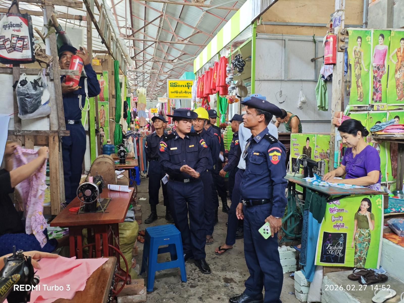 အဆိုပါ ကွင်းဆင်းစစ်ဆေးရာတွင် မြို့နယ်မီးသတ်ဦးစီးမှူး ဦးတင်မောင်ထွေးနှင့် တပ်ဖွဲ့ဝင်များ၊ မြို့နယ်စည်ပင်သာယာရေး အဖွဲ့ဝန်ထမ်းများ၊ လျှပ်စစ်ဌာနနှင့် တာဝန်ရှိသူများ၊ ရပ်ကွက်အုပ်ချုပ်ရေးမှူးများနှင့် ဈေးကော်မတီဝင်များ ပါဝင်သာ ပူးပေါင်းအဖွဲ့များဖြင့် ဈေးအတွင်း မီးဘေးအန္တရာယ် ကြိုတင်ကာကွယ်ရန် ပြည်သူများအနေဖြင့် မီးဘေးအန္တရာယ် မဖြစ်ပွားစေရေးနှင့် မီးဘေးကြောင့် ဒေသခံပြည်သူများ အသက်အိုးအိမ်စည်းစိမ်များ ဆုံးရှုံးမှုများ မရှိစေရေးအတွက် ဈေးဆိုင်ခန်းများတွင် အသုံးပြုသော လျှပ်စစ်မီးကြိုးများ ဟောင်းနွမ်းနေပါက အသစ်လဲလှယ်ရန်၊ မီးဘေးလုံခြုံရေးအတွက် လျှပ်စစ်မီး စနစ်တကျ ကိုင်တွယ်အသုံးပြုရေး၊ မီးချိတ်၊ မီးကပ်၊ သဲအိတ်၊ ရေအိတ်၊ မီးသတ်ဆေးဘူးနှင့်ရေပုံးများ အသင့်ထားရှိရန်၊ မီးလောင်မှုဖြစ်၍ မီးခိုးအန္တရာယ် ကြုံတွေ့ရပါက ဆောင်ရန်၊ ရှောင်ရန်များ၊ မီးလောင်မှု ဖြစ်ပွားပါက အချိန်မီသတင်းပေးပို့ကြရန်နှင့် မီးဘေးကြိုတင်ကာကွယ်ရေးဆိုင်ရာ လိုက်နာရမည့် အချက်များအား ပြောကြားခဲ့ပြီးနောက် တာဝန်ရှိသူများက စစ်ဆေးခဲ့ကြကြောင်း သိရသည်။
