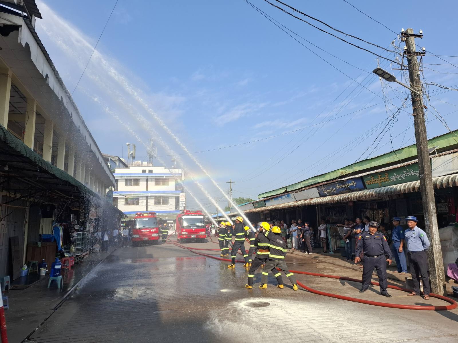 ဧရာဝတီတိုင်းဒေသကြီး၊ ပုသိမ်ခရိုင်၊ ပုသိမ်မြို့ အမှတ်(၄)ရပ်ကွက်ရှိ ရွှေပြည်သာဈေးနှင့် မြို့မဈေးတို့တွင် ယနေ့နံနက်ပိုင်းက ဧရာဝတီတိုင်းဒေသကြီး မီးသတ်ဦးစီးဌာနမှဦးဆောင်၍ မီးဘေးအန္တရာယ်ကြိုတင်ကာကွယ်ရေး အသိပညာပေးဟောပြောခြင်းနှင့် ဇာတ်တိုက်လေ့ကျင့်ခြင်းများ ဆောင်ရွက်ခဲ့ကြသည်။