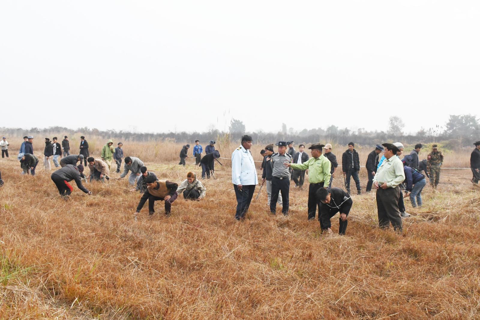 ထိုသို့ ပူးပေါင်းဆောင်ရွက်ရာတွင် ခရိုင်/မြို့နယ် ဌာနဆိုင်ရာများ၊ တပ်မတော်သားများနှင့် ရပ်ကွက်/ ကျေးရွာအုပ်စု အုပ်ချုပ်ရေးမှူးနှင့် အဖွဲ့ဝင်များ စုစုပေါင်းအင်အား (၃၅၀)ဦးတို့က လေယာဉ်ပြေးလမ်း အရှေ့ဘက် မီးတားလမ်း ပေ(၆၀) အတွင်းရှိ ကိုင်းတောများ၊ မြက်ပင်များနှင့် ချုံနွယ်ပိတ်ပေါင်းများအား ခုတ်ထွင်ရှင်းလင်းခြင်းနှင့် ခုတ်ထွင်ရှင်းလင်းထားသည့် အမှိုက်သရိုက်များအား မြို့နယ်စည်ပင်သာယာရေးအဖွဲ့ အမှိုက်သိမ်းကားဖြင့် စနစ်တကျ သယ်ယူစွန့်ပစ်ခြင်းများကို ပူးပေါင်းဆောင်ရွက်ခဲ့ကြသည်။