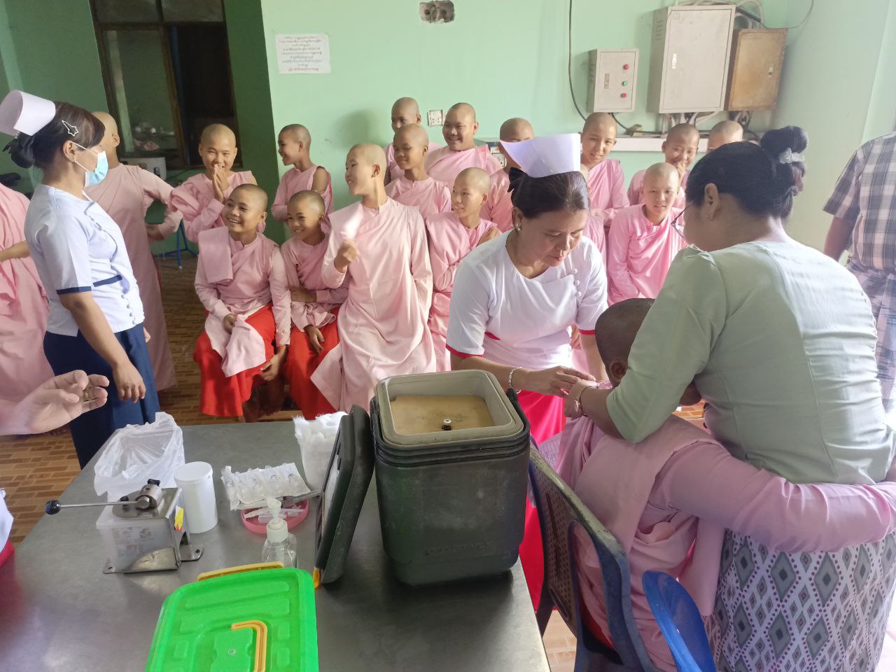 ရန်ကုန်တိုင်းဒေသကြီးအတွင်း မြို့နယ်များမှ မိဘမဲ့ကျောင်းများ၊ IDP camp များ၊ ဘုန်းတော်ကြီးကျောင်းများ၊ သီလရှင်ကျောင်းများရှိ လူစုလူဝေးဖြင့် နေထိုင်သည့်နေရာများတွင် အသက် ၉ လမှ ၁၅ နှစ် ကလေးများ ဝက်သက်၊ ဂျိုက်သိုးရောဂါ ကာကွယ်ဆေးထိုးနှံပေးခြင်းလုပ်ငန်းများကို ဆောင်ရွက်ပေးလျက်ရှိရာ ဖေဖော်ဝါရီ ၂၇ ရက်နေ့နံနက်ပိုင်းက ဒဂုံမြို့သစ်(မြောက်ပိုင်းမြို့နယ်)၊ အမှတ်(၁၆)ရပ်ကွက်နှင့် အမှတ်(၄၂)ရပ်ကွက်တို့တွင် မြို့နယ်ပြည်သူ့ကျန်းမာရေးဦးစီးဌာနမှ ဝက်သက်၊ ဂျိုက်သိုးရောဂါ ကာကွယ်ဆေးထိုးနှံပေးခဲ့ကြောင်း သိရသည်။