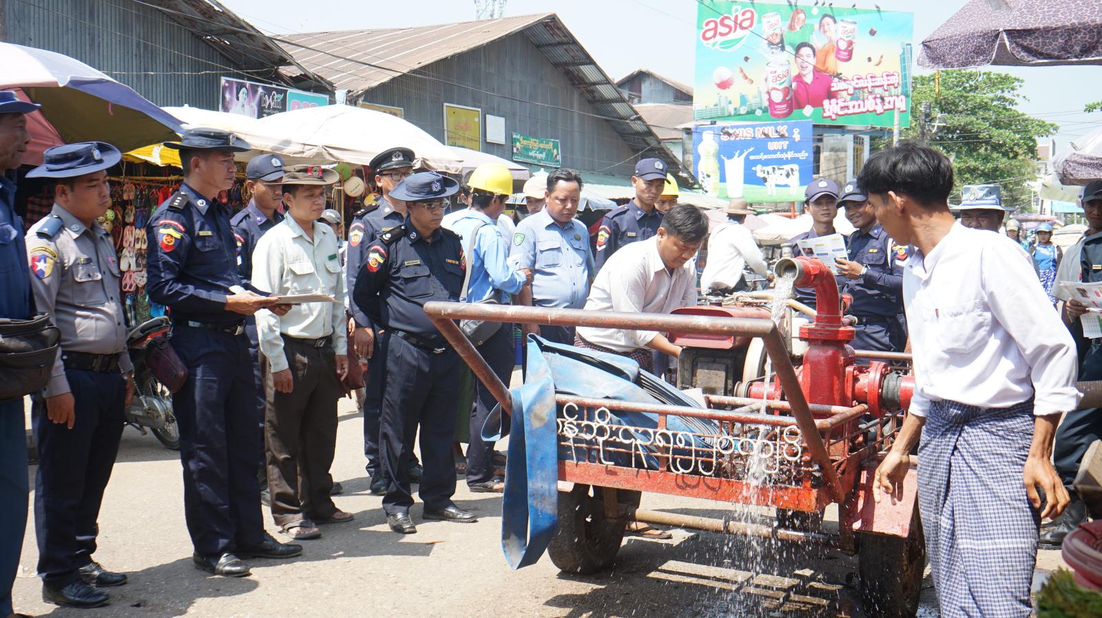 စစ်ဆေးဆောင်ရွက်ရာသို့ ဖျာပုံခရိုင်၊ မီးသတ်ဦးစီးမှူး ဦးဇော်မင်းဦး၊ ဘိုကလေးမြို့နယ် မီးသတ်ဦးစီးမှူး ဦးထွန်းအောင်နှင့် တပ်ဖွဲ့ဝင်များ၊ မြို့နယ်စည်ပင်သာယာရေးအဖွဲ့ အမှုဆောင်အရာရှိ ဦးခင်ညွန့်နှင့် အဖွဲ့၊ မြို့နယ်အထွေထွေအုပ်ချုပ်ရေးဦးစီးဌာန၊ ဘိုကလေးမြို့မရဲစခန်း၊ မြို့နယ်လျှပ်စစ်ဓာတ်အား ဖြန့်ဖြူးရေးလုပ်ငန်းတို့မှ တာဝန်ရှိသူများ ပူးပေါင်း၍ မြို့မဈေးကြီးအတွင်း မီးလောင်၊ မီးလန့်မှုများ မဖြစ်ပွားစေရေး၊ မီးဘေးအန္တရာယ် ကြိုတင်ကာကွယ်ရေးတို့အတွက် လျှပ်စစ်မီးသွယ်တန်းသုံးစွဲနေမှု အခြေအနေများ၊ မီးငြိမ်းသတ်ရေးပစ္စည်းနှင့် မီးသတ်ဆေးဘူးများထားရှိ ဆောင်ရွက်ထားမှုအခြေအနေများ နှင့်မီးငြှိမ်းသတ်ရေးအတွက် ရေရရှိရေးဆောင်ရွက်ထားရှိမှု အခြေအနေများအား ကြည့်ရှုစစ်ဆေးပြီး၊ ဈေးသူ/သားများအား မီးစနစ်တကျဂရုပြုသုံးစွဲရေး၊ အမှိုက်နှင့် လောင်စာများအား စနစ်တကျစွန့်ပစ်ရေး၊ သဲအိတ်၊ ရေအိတ်များ၊ မီးချိတ်၊ မီးကပ်များ စနစ်တကျထားရှိရန် စစ်ဆေးခြင်းနှင့် မီးသတိပေးလက်ကမ်းစာစောင်များ ဖြန့်ဝေခြင်းများ ဆောင်ရွက်ခဲ့ပါကြောင်း သိရသည်။