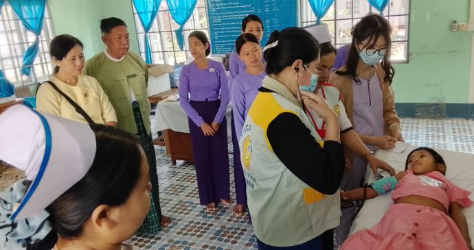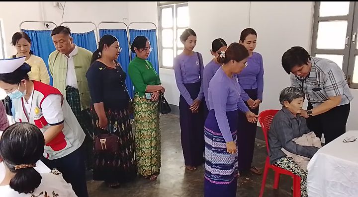 ထိုသို့ဆောင်ရွက်ရာ၌ အထွေထွေသမားတော်က ကျား (၃၆)ဦး၊ မ (၈)ဦး၊ ခွဲစိတ်အထူးကုက ကျား (၄)ဦး၊ မ (၁၁)ဦး၊ ကလေးအထူးကုဆရာဝန်ကြီးက ကျား (၉)ဦး၊ မ (၅)ဦး၊ အရိုးအထူးကုဆရာဝန်ကြီးက ကျား (၂၁)ဦး၊ မ (၄၂)ဦး၊ မျက်စိအထူးကုဆရာဝန်ကြီးက ကျား (၁၇)ဦး၊ မ (၅၅)ဦး၊ နားနှာခေါင်းလည်ချောင်းအထူးကုက ကျား (၇)ဦး၊ မ (၁၄)ဦး၊ သွားအထူးကုက ကျား (၅)ဦး၊ မ (၅)ဦး၊ တီဗွီဓာတ်မှန်ဆရာဝန်က ကျား (၂၁)ဦး၊ မ (၄၃)ဦးတို့အား စမ်းသပ်စစ်ဆေးကုသပေးခဲ့ကြရာ ကျား (၁၂၀)ဦးနှင့် မ (၂၅၂)ဦး စုစုပေါင်း (၃၇၂)ဦးအား စမ်းသပ်စစ်ဆေးကုသမှုများ ဆောင်ရွက်ပေးခဲ့ကြသည်။