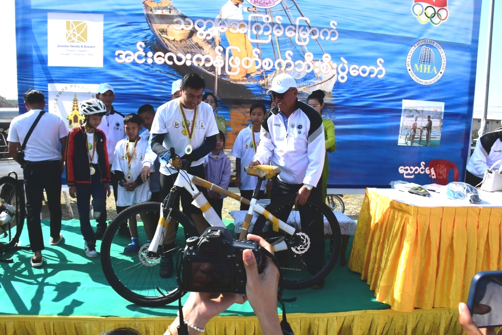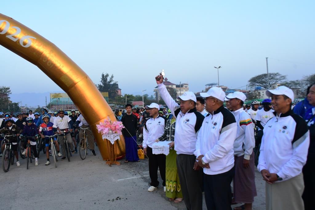 ထို့နောက် (၃၀)ကီလိုမီတာကို စက်ဘီးစီးနင်းခြင်းအတွက် ပြည်နယ်စီးပွားရေးရာဝန်ကြီး ဦးခွန်သိန်းမောင်ကလည်းကောင်း၊ (၁၅)ကီလိုမီတာ စက်ဘီးစီးနင်းခြင်းအတွက် ပြည်နယ်တိုင်းရင်းသားရေးရာဝန်ကြီး ဦးအောင်ကြည်ဝင်းကလည်းကောင်း အသီးသီးသေနတ်ပစ်ဖောက်၍ တာလွှတ်ပေခဲ့ပြီး ပါဝင်စီးနင်းသူများကို ပြည်နယ်ဝန်ကြီးများနှင့် ဧည့်သည်တော်များက ရင်းရင်းနှီးနှီး နှုတ်ဆက်အားပေးခဲ့ကြသည်။