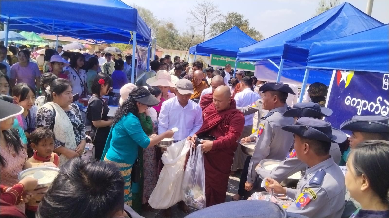 အဆိုပါ လှူဒါန်းပွဲကို ကျောက်မဲခရိုင် စီမံခန့်ခွဲရေးနှင့် အုပ်ချုပ်ရေးကော်မတီဥက္ကဋ္ဌ ဦးကျော်ဆွေဝင်းနှင့်အဖွဲ့ဝင်များ၊ ခရိုင်/မြို့နယ်အဆင့် ဌာနဆိုင်ရာများ၊ နယ်မြေခံတပ်ရင်းမှ တပ်မတော်မိသားစုဝင်များ၊ ရဲတပ်ဖွဲ့ဝင်များ၊ မြို့ပေါ်ရပ်ကွက်နေ ပြည်သူများနှင့် ကျေးရွာနေ ပြည်သူများက မြို့နယ်အတွင်းရှိ ဘုန်းတော်ကြီးကျောင်း (၄၇) ကျောင်းမှ သံဃာတော် (၈၂၄) ပါးနှင့် သီလရှင် (၁၄၁) ပါးတို့အား ဆွမ်းဆန်တော်များနှင့် လှူဖွယ်ပစ္စည်းများကို သဒ္ဓါတရား ပြည့်ဝစွာ ဆက်ကပ်လှူဒါန်းခဲ့ကြောင်း သိရသည်။