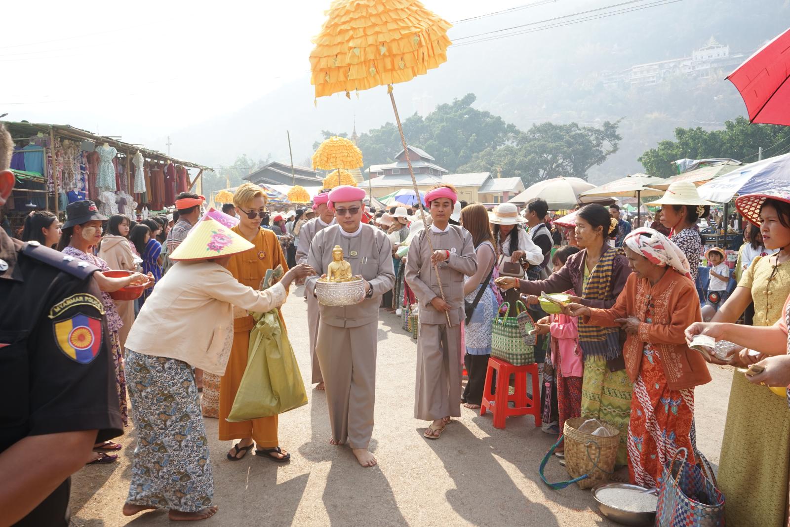 မွန်းလွဲပိုင်းတွင် ဓနုကိုယ်ပိုင်အုပ်ချုပ်ခွင့်ရဒေသဦးစီးအဖွဲ့ဥက္ကဋ္ဌနှင့် တာဝန်ရှိသူများက ဗုဒ္ဓရုပ်ပွားတော်များအားပင့်ဆောင်၍ သံဃာတော်များနှင့်အတူဆွမ်းဆန်စိမ်းအလှူခံခဲ့ကြရာ အလှူငွေများ၊ ဆွမ်းဆန်တော်များနှင့်လှူဖွယ်ဝတ္ထုပစ္စည်းများကို လောင်းလှူခဲ့ကြကြောင်း သိရသည်။