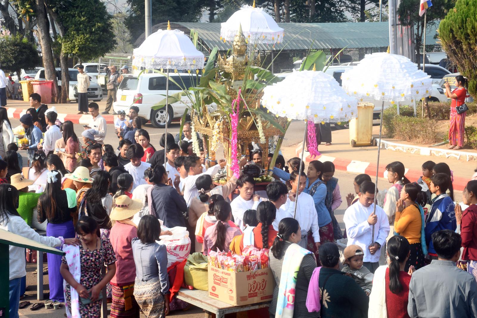 ဆက်လက်၍ (၂၃) ကြိမ်မြောက် သံဃာ့ဒါနဆွမ်းတော်ကြီး လောင်းလှူပွဲကျင်းပရာ ပင့်သံဃာတော် ၁၀၈ ပါးအား ပြင်ဦးလွင်တပ်နယ်မှ တပ်ရင်းတပ်ဖွဲ့များမှ တာဝန်ရှိသူများ၊ ခရိုင်စီမံခန့်ခွဲရေးနှင့် အုပ်ချုပ်ရေးကော်မတီဥက္ကဋ္ဌနှင့်အဖွဲ့ဝင်များ၊ ခရိုင်နှင့် မြို့နယ်အဆင့်ဌာနဆိုင်ရာများ၊ စေတနာရှင်အလှူရှင်များက ဆွမ်းသပိတ်၊ ဆွမ်းဆန်စိမ်းများနှင့် လှူဖွယ်ပစ္စည်းများအား ဆက်ကပ်လှူဒါန်းခဲ့ကြကြောင်း သိရသည်။