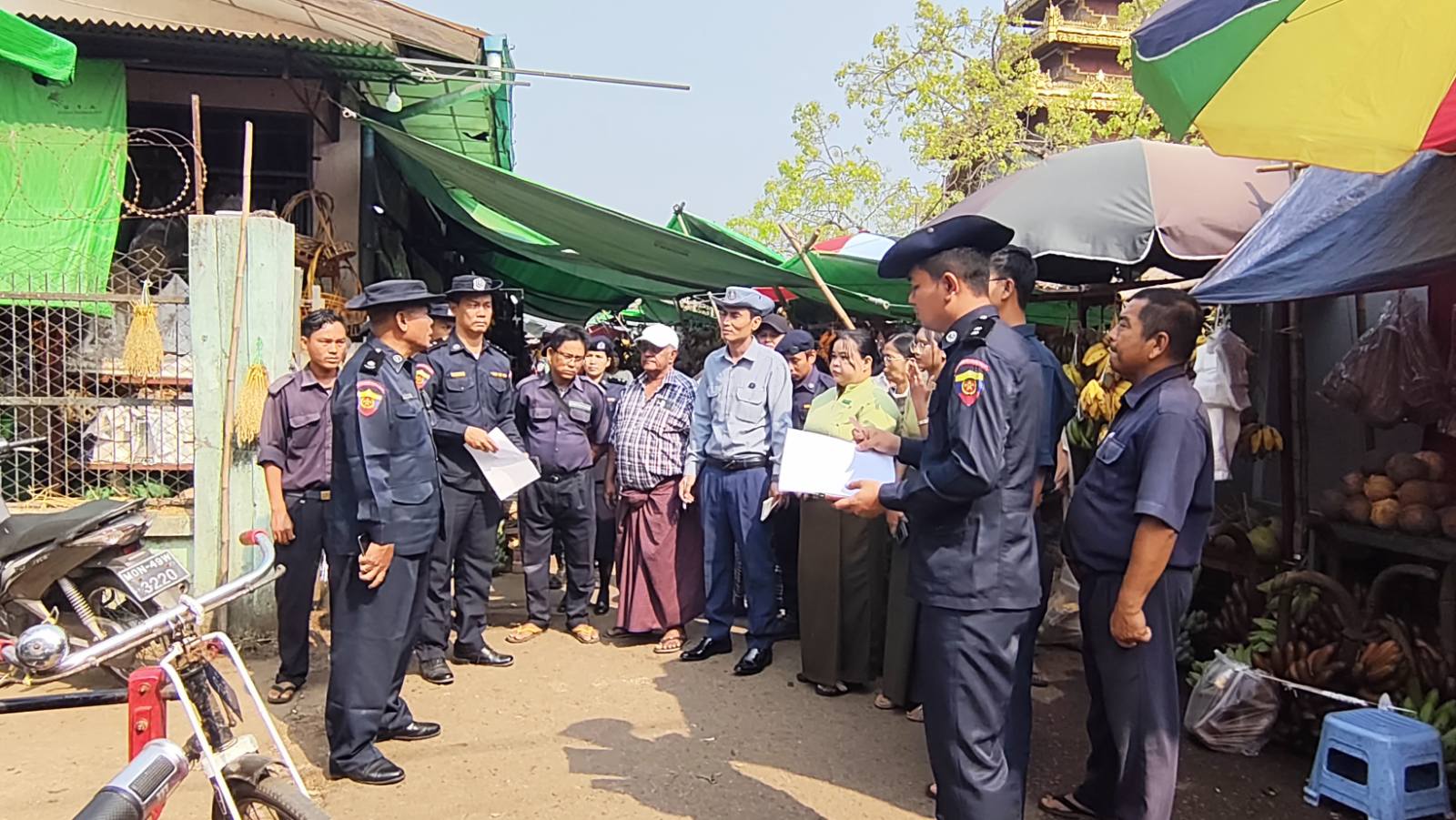 ထိုသို့ ကွင်းဆင်းစစ်ဆေးရာတွင် ခရိုင်မီးသတ်ဦးစီးမှူး ဦးမြင့်ဦး ဦးဆောင်၍ သန္ဓေမီးသတ်တပ်ဖွဲ့ဝင်များ၊ အရန်မီးသတ်တပ်ဖွဲ့ဝင်များ၊ မြို့နယ်အထွေထွေအုပ်ချုပ်ရေးဦးစီး ဌာန၊ မြို့နယ်စည်ပင်သာယာရေးအဖွဲ့၊ မြို့နယ်လျှပ်စစ်နှင့် ဈေးအကျိုးတော်ဆောင်အဖွဲ့တို့ ပူးပေါင်း၍ မြို့မဈေးအတွင်းရှိ ဈေးဆိုင်ခန်းများအား မီးဘေးလုံခြုံရေး စစ်ဆေးခြင်းနှင့် ဈေးသူဈေးသားများအား မီးဘေးအန္တရာယ် ကြိုတင်ကာကွယ်ရေး လိုက်နာဆောင်ရွက်ရမည့် အချက်များကို အသိပညာပေး ပြောကြားခဲ့ကြောင်း သိရသည်။