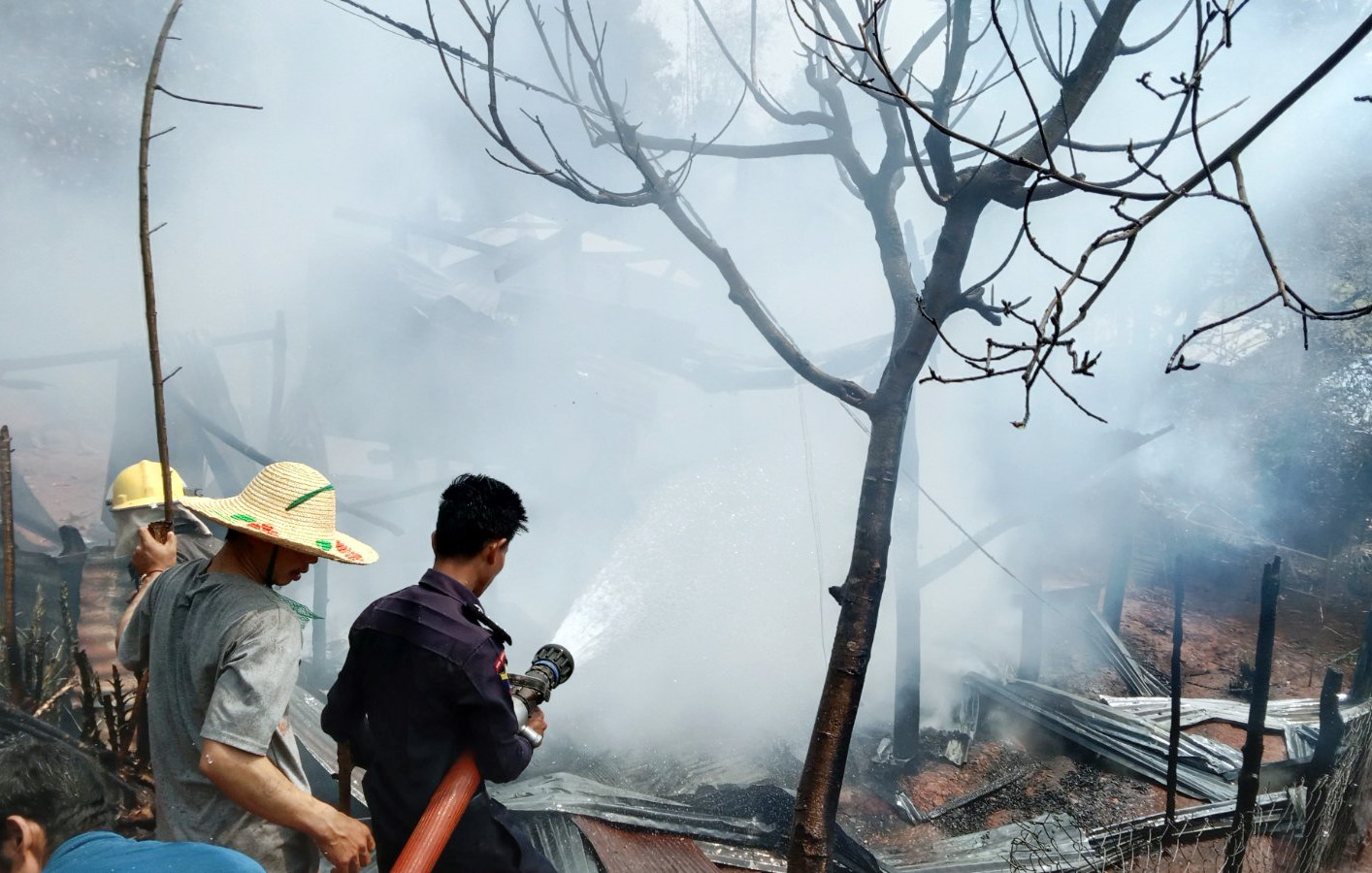 မီးလောင်ကျွမ်းသည့်နေရာသို့ ကွန်ဟိန်းမြို့နယ် မီးသတ်ဦးစီးဌာနမှ ဦးစီးအရာရှိ ဦးစီး၍ မီးသတ်တပ်ဖွဲ့ဝင်များ၊ ရဲတပ်ဖွဲ့ဝင်များ၊ ဒေသခံပြည်သူများ ပူးပေါင်းကာ မီးသတ်ယာဉ်(၂)စီးဖြင့် မီးငြိမ်းသတ်ခဲ့ရာ မွန်းလွဲ ၁ နာရီ ၂၅ မိနစ်အချိန်ခန့်တွင် မီးငြှိမ်းသတ်နိုင်ခဲ့ကြောင်း သိရသည်။