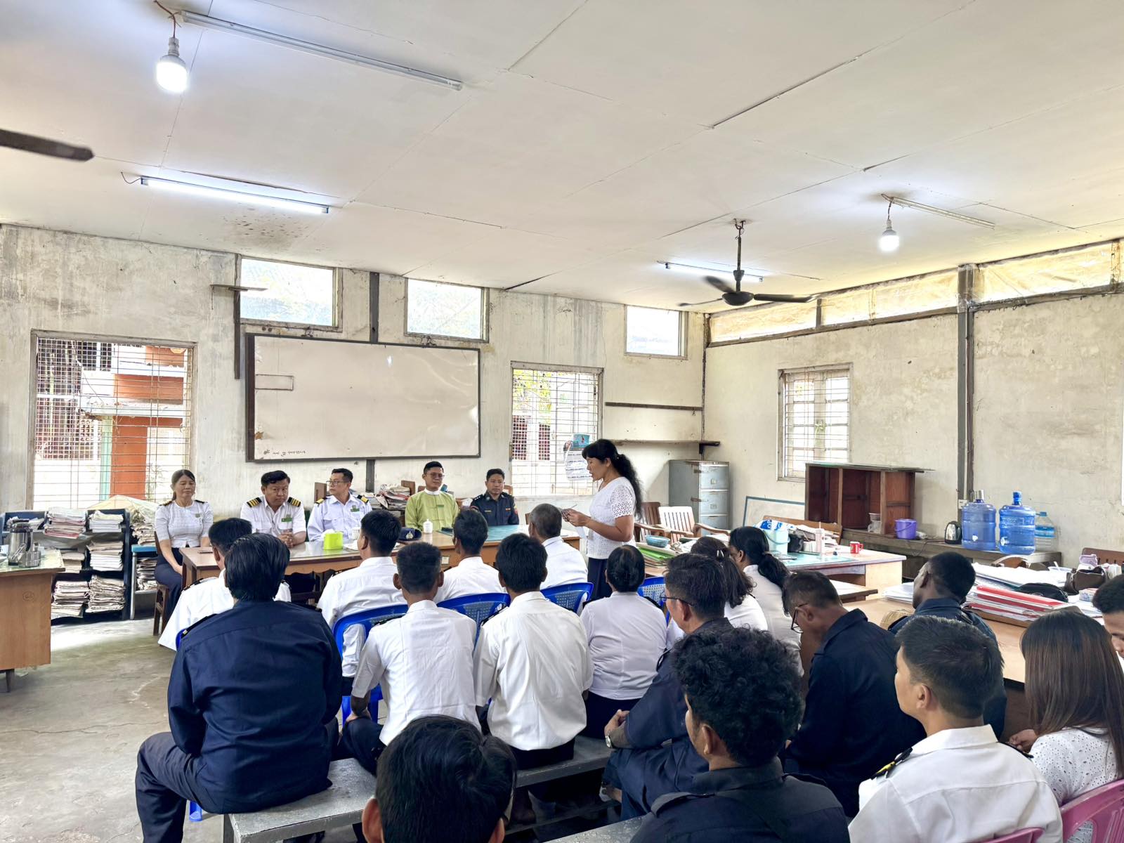 ရှေးဦးစွာ မြို့နယ်အထွေထွေအုပ်ချုပ်ရေးဦးစီးဌာန ဒုတိယမြို့နယ်အုပ်ချုပ်ရေးမှူး ဦးအောင်သူက အဖွင့်အမှာစကားပြောကြားပြီး မြို့နယ်မီးသတ်ဦးစီးမှူး ဦးကျော်သန်းဌေးမှ မီးဘေးလုံခြုံရေးနှင့် စပ်လျဥ်းသည့် ရည်မှန်းချက်တာဝန် (၄) ရပ်ဖြစ်သည့် မီးဘေးလုံခြုံရေး၊ သဘာဝဘေးအန္တရာယ်ကာကွယ်ရေး၊ ရှာဖွေကယ်ဆယ်ရေး၊ ပြည်သူ့အကျိုးပြုဆောင်ရွက်ရေးလုပ်ငန်းများအားလည်းကောင်း၊ မီးလောင်ကျွမ်းခြင်းအကြောင်းအရင်းများ၊ မီးအတန်းအစားခွဲခြားခြင်း၊ အခြေခံမီးငြှိမ်းသတ်နည်း (၃) နည်း၊ မီးသတ်ယာဥ်စက်များ အချိန်မီငြှိမ်းသတ်နိုင်ရန် ဆောင်ရွက်နေမှုများ၊ လျှပ်စစ်မီးလောင်မှုဖြစ်ပွားရသည့် အကြောင်းရင်းအချက်အလက်များ၊ လျှပ်စစ်မီးလောင်လျှင် ရှောင်ကျဥ်ရမည့်အချက်များ၊ မီးလောင်မှုဖြစ်ပွားပါက ဆောင်ရွက်ရမည့်အချက်များ၊ မီးဘေးအန္တရာယ်ကြုံတွေ့ပါက အမြန်ဆုံးဆက်သွယ်အကြောင်းကြားနိုင်သည့် ဖုန်းနံပါတ်များကိုလည်းကောင်း အသိပညာပေးဟောပြောခဲ့သည်။