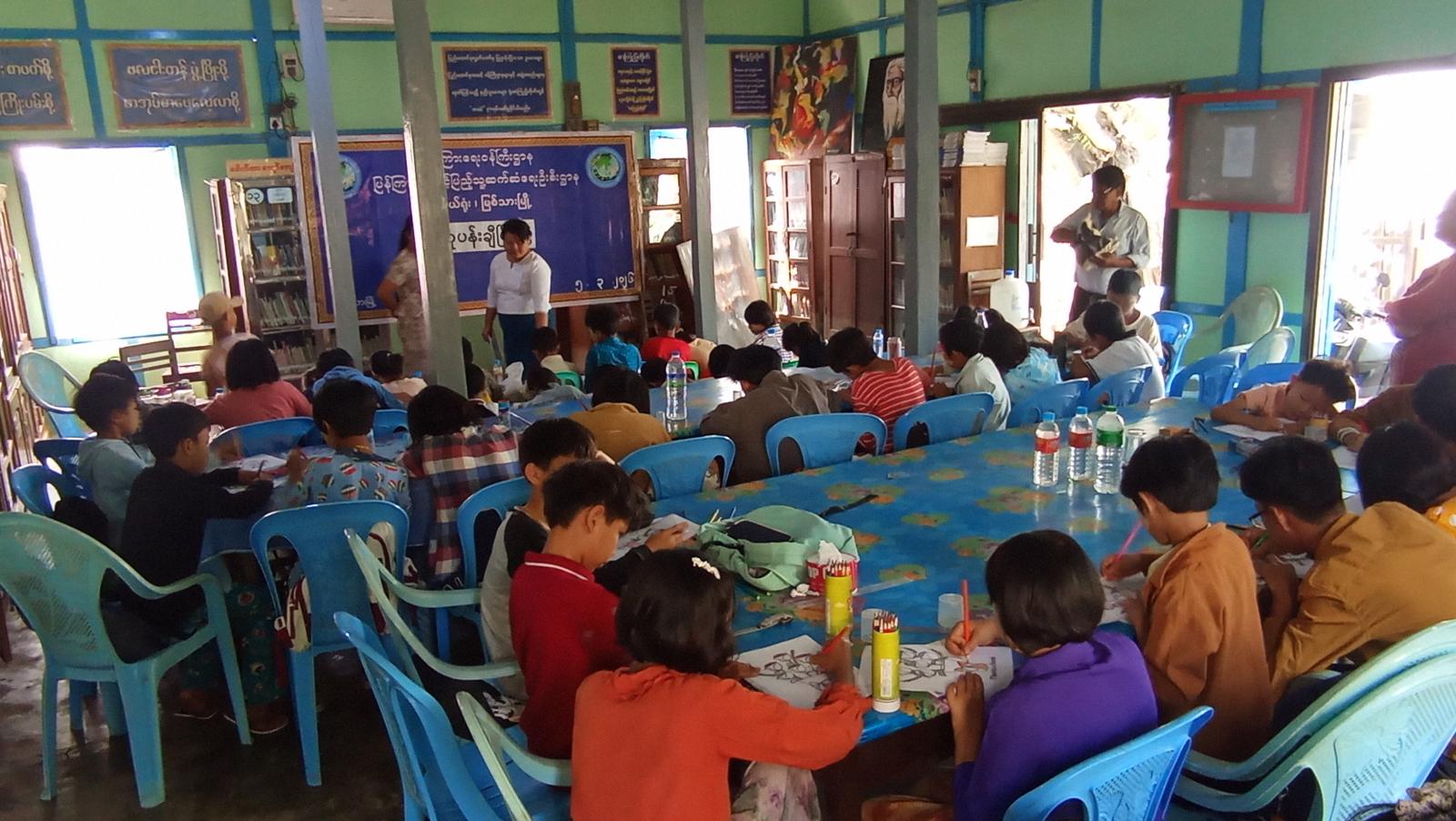 ဦးစွာ မြို့နယ်ပြန်ကြားရေးနှင့်ပြည်သူ့ဆက်ဆံရေးဦးစီးဌာန ဦးစီးအရာရှိ ဒေါ်သီတာအောင်က ပြိုင်ပွဲနှင့်ပတ်သက်၍ စည်းကမ်းချက်များကို ရှင်းလင်းပြောကြားပြီး ကျောင်းသား၊ ကျောင်းသူတွေ အနေနဲ့လည်း အသိပညာဗဟုသုတများရရှိရေး ၊ ယှဉ်ပြိုင်လိုသည့် စိတ်ဓာတ်များ ဖြစ်ပေါ်လာစေရေး၊ စာအုပ်စာစောင်ပြပွဲ၊ ကာယ၊ ဉာဏစွမ်းရည်ပြိုင်ပွဲများကို ကျင်းပခြင်း၊ စာကြည့်တိုက်နှင့် ရင်းနီးကျွမ်းဝင်ပြီး အခမဲ့ငှားရမ်းဖတ်ရှုနိုင်တဲ့ စာအုပ်စာပေတွေကို ကလေးတွေအနေနဲ့စာပေဖတ်ရှုနိုင်တဲ့ အခွင့်အလမ်းတွေရရှိလာနိုင်ကြောင်းပြောကြားသည်။ ထို့နောက် ပုံတူပန်းချီပြိုင်ပွဲကို ပြိုင်ပွဲဝင် ကျောင်းသား၊ ကျောင်းသူ ၆၄ ဦးပါဝင် ယှဉ်ပြိုင်သည်။ သင်တန်းဆင်းပွဲတွင် ဆုများချီးမြှင့်ပေးအပ်သွားမည်ဖြစ်ကြောင်း သိရသည်။