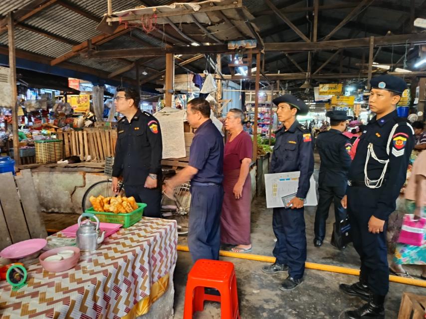 မီးဘေးလုံခြုံရေးကွင်းဆင်းစစ်ဆေးရာတွင်လည်း ရန်ကုန်တိုင်းဒေသကြီး မီးသတ်ရုံးဦးစီးအရာရှိ ဦးဇော်ရန်အောင် ဦးဆောင်၍ တောင်ဥက္ကလာပမြို့နယ် သန္ဓေမီးသတ်တပ်ဖွဲ့ဝင်များနှင့် အရန်မီးသတ်တပ်ဖွဲ့ဝင်များ၊ သက်ဆိုင်ရာစျေးတာဝန်ခံများပူးပေါင်း၍ ဈေးများအတွင်း မီးဘေးလုံခြုံရေးစစ်ဆေးခြင်း၊ အကြံပေးခြင်း၊ သရုပ်ပြဆောင်ရွက်ပေးခြင်းနှင့် လိုအပ်သည်များ ထပ်မံဆောင်ရွက်ထားရှိရန် စျေးတာဝန်ခံများအား ရှင်းလင်းပြောကြားခဲ့ကြောင်း သိရသည်။