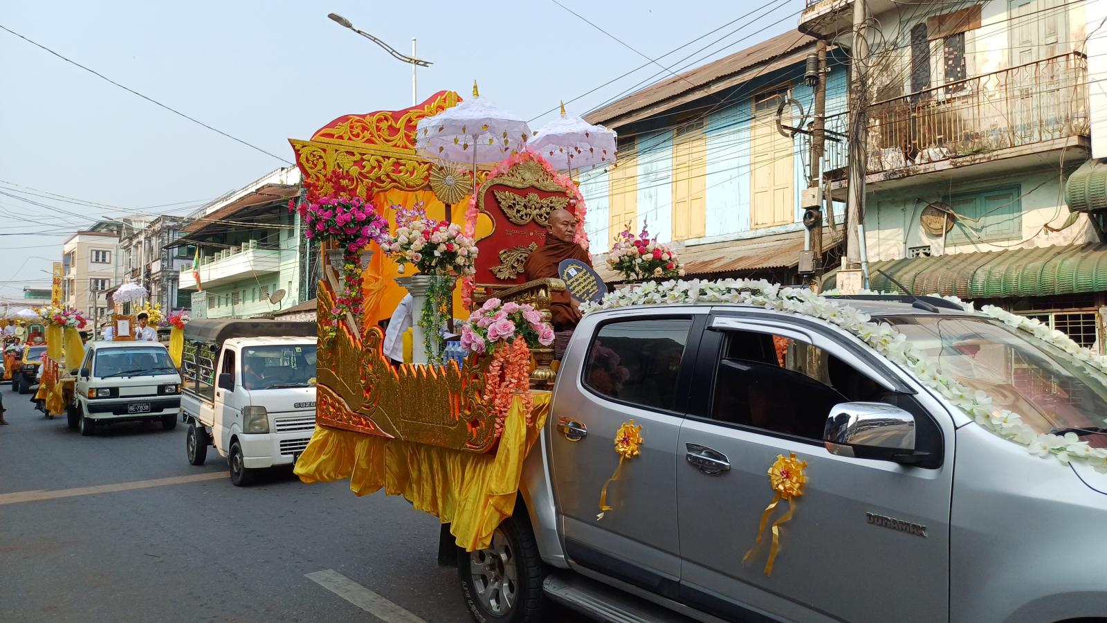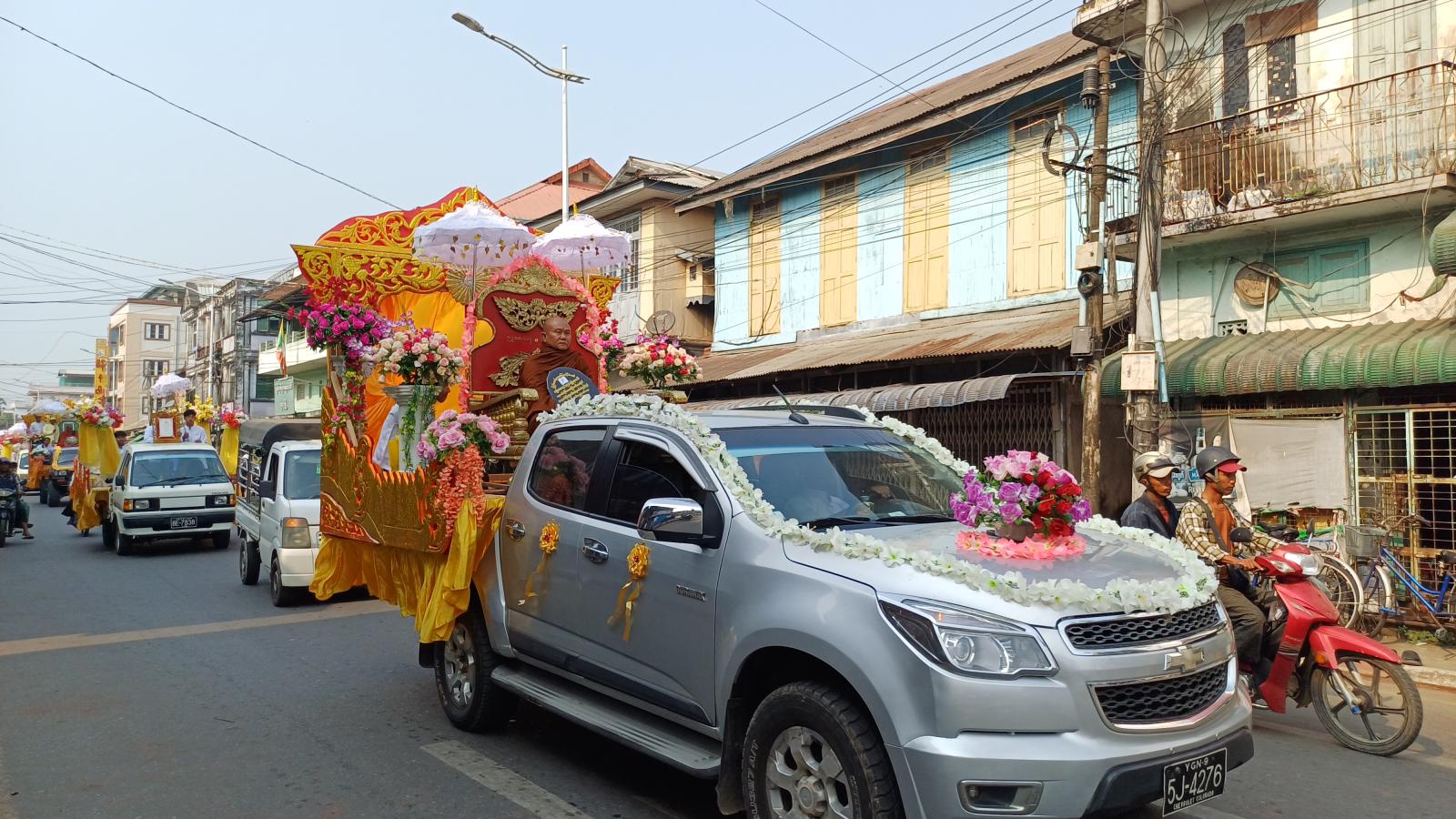 ဧရာဝတီတိုင်းဒေသကြီး၊ ဖျာပုံခရိုင်၊ ဖျာပုံမြို့နယ်တွင် သာသနာတော်ဆိုင်ရာ မဟာကမ္မဋ္ဌာနစရိယနှင့် သဒ္ဓမ္မဇောတိကဓဇ ဘွဲ့တံဆိပ်တော်ရရှိတော်မူကြသော ဆရာတော်ကြီးများအား ခရီးဦးကြိုဆို ပင့်ဆောင်လှည့်လည်ပူဇော်ပွဲကို ယမန်နေ့ နေ့လယ်ပိုင်း အချိန်က ဖျာပုံမြို့၌ ကျင်းပသည်။