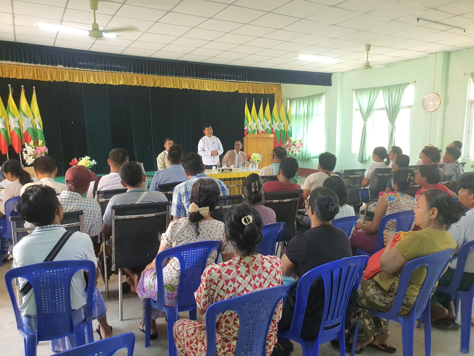 ရန်ကုန်တိုင်းဒေသကြီး၊ တွံတေးခရိုင်၊ ဆိပ်ကြီးခနောင်တိုမြို့နယ်၌ တွံတေးတူးမြောင်း ဖွံ့ဖြိုးတိုးတက်ရေးစီမံကိန်းဧရိယာနှင့်မလွတ်ကင်းသည့် ဆိပ်ကြီးအရှေ့ရပ်ကွက် တွံတေးတူးမြောင်းပိုင်မြေနေရှိ အဆောက်အဦနှင့် မြေနေရာများအတွက် နစ်နာကြေးပေးအပ်ခြင်းကို မတ်လ (၄) ရက်နေ့နံနက် ၁၀ နာရီအချိန်က မြို့နယ်အထွေထွေအုပ်ချုပ်ရေးဦးစီးဌာန အစည်းအဝေးခန်းမ၌ ပြုလုပ်ခဲ့သည်။
