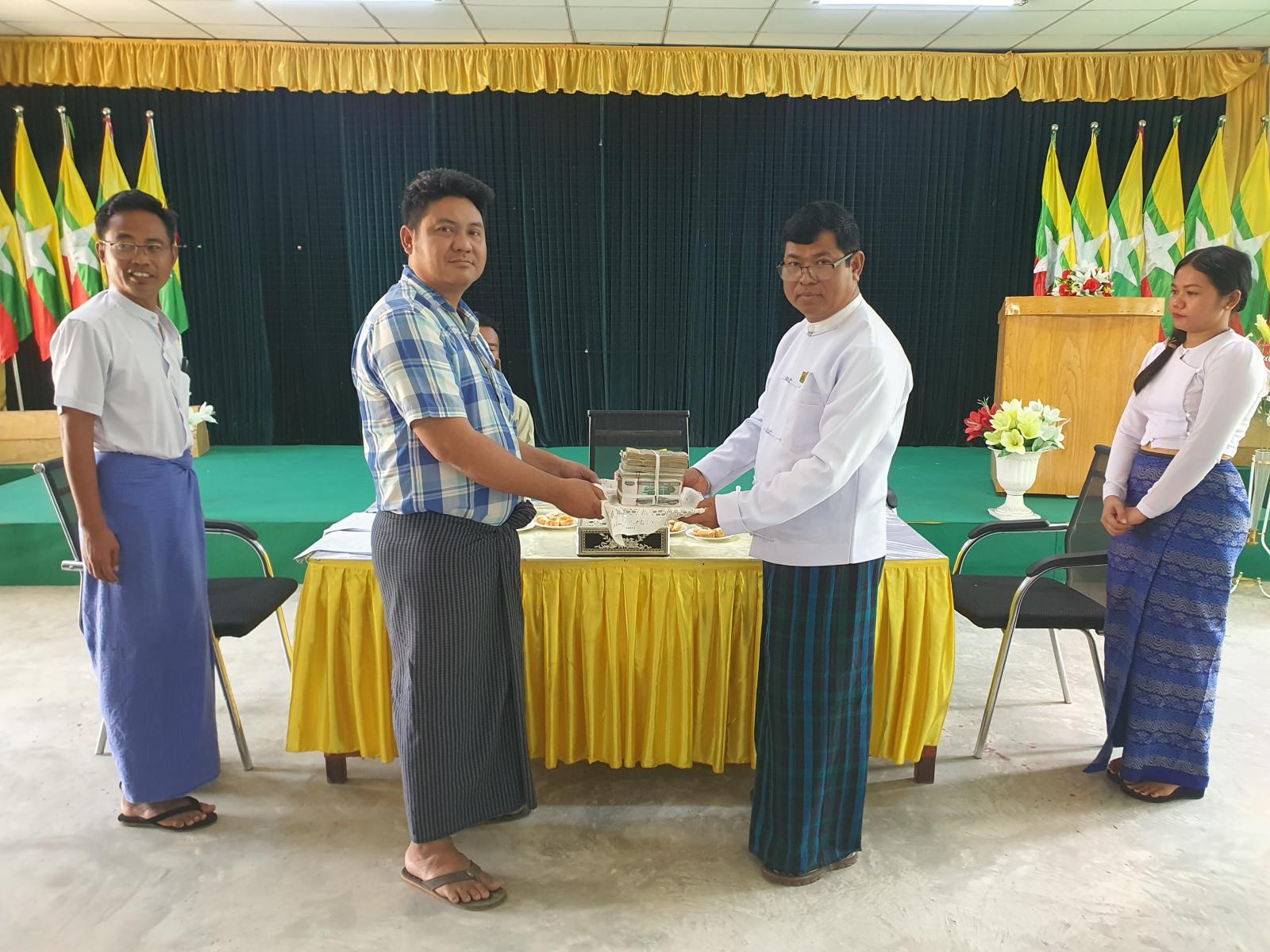 ဦးစွာ စီမံကိန်းဒါရိုက်တာ ရေအရင်းအမြစ်နှင့်မြစ်ချောင်းများ ဖွံ့ဖြိုးတိုးတက်ရေးဦးစီးဌာန ညွှန်ကြားရေးမှူး ဦးဇော်လွင်က နစ်နာကြေးပေးအပ်မည့် အစီအစဥ်နှင့်ပတ်သက်၍ ရှင်းလင်းဆွေးနွေးပြောကြားခဲ့သည်။ ထို့နောက် စီမံကိန်းဒါရိုက်တာ ညွှန်ကြားရေးမှူး ဦးဇော်လွင်၊ မြို့နယ်စီမံခန့်ခွဲရေးနှင့် အုပ်ချုပ်ရေးကော်မတီဥက္ကဋ္ဌ ဦးမြင့်လှိုင်နှင့် တာဝန်ရှိသူများက တွံတေးတူးမြောင်းဖွံ့ဖြိုးတိုးတက်ရေး စီမံကိန်းဧရိယာနှင့် မလွတ်ကင်းသည့် ဆိပ်ကြီးအရှေ့ရပ်ကွက် တွံတေးတူးမြောင်းပိုင်မြေနေရှိ အဆောက်အဦနှင့် မြေနေရာများအတွက် ရပ်ကွက်နေပြည်သူ ၁၉ ဦးထံ နစ်နာကြေးများအား တစ်ဦးချင်းစီ စနစ်တကျပေးအပ်ခဲ့သည်။