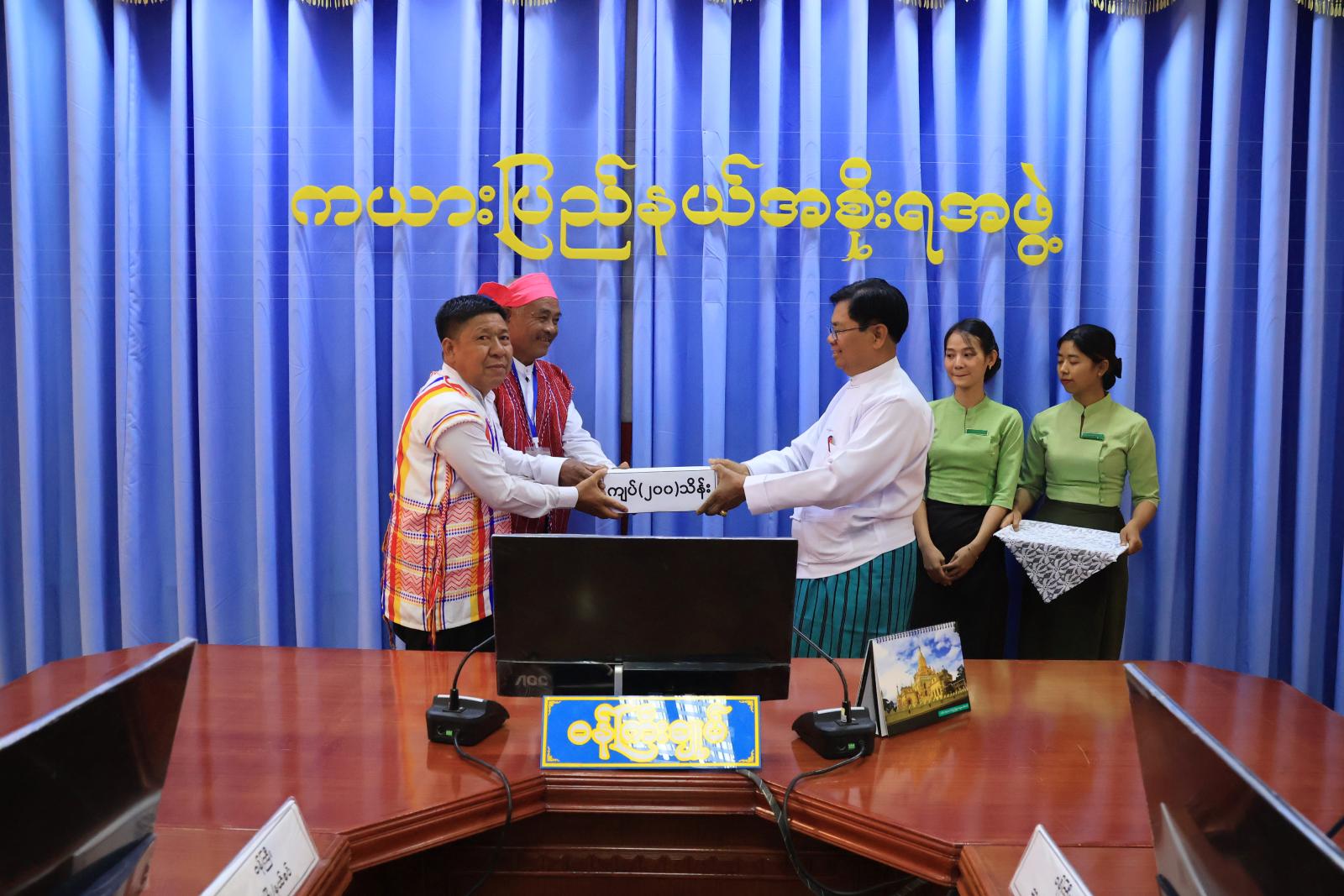 ကယားပြည်နယ်လုံးဆိုင်ရာ (၆၆)ကြိမ်မြောက် တံခွန်တိုင်ပွဲတော် အောင်မြင်စွာ ကျင်းပနိုင်ရေးအတွက် ပြည်နယ်ဝန်ကြီးချုပ်က တံခွန်တိုင်ပွဲတော်ကျင်းပရေးကော်မတီသို့ ထောက်ပံ့အလှူငွေ ကျပ်သိန်း(၂၀၀) ပေးအပ်လှူဒါန်းပွဲအခမ်းအနားကို ပြည်နယ်အစိုးရအဖွဲ့ရုံး အစည်းအဝေးခန်းမ၌ မတ် ၃ ရက်က ကျင်းပရာ စာပေနှင့်ယဉ်ကျေးမှုကော်မတီဉက္ကဋ္ဌများက လက်ခံရယူခဲ့ကြောင်း သိရသည်။