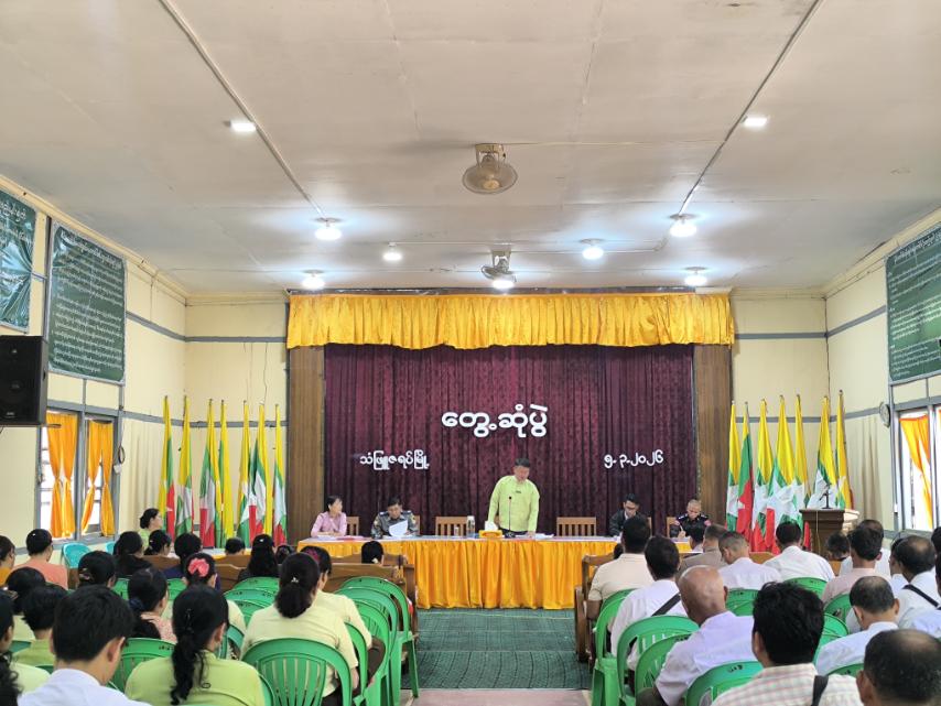 မွန်ပြည်နယ်၊ သံဖြူဇရပ်မြို့နယ်တွင် စက်သုံးဆီပြတ်လပ်မှုမရှိစေရေးနှင့် ခြိုးခြံချွေတာသုံးစွဲစေရေး လုပ်ငန်းညှိနှိုင်းအစည်းအဝေးကို မတ် ၅ ရက် နံနက်ပိုင်းက အထွေထွေအုပ်ချုပ်ရေးဦးစီးဌာန ဘုရင့်နောင်ခန်းမ၌ ကျင်းပပြုလုပ်ရာ မြို့နယ်စီမံခန့်ခွဲရေးနှင့် အုပ်ချုပ်ရေးကော်မတီဥက္ကဋ္ဌနှင့် အဖွဲ့ဝင်များ၊ မြို့နယ်အဆင့် ဌာနဆိုင်ရာတာဝန်ရှိသူများ၊ စက်သုံးဆီအရောင်းဆိုင် လုပ်ငန်းရှင်များ၊ ရပ်ကွက်ကျေးရွာအုပ်ချုပ်ရေးမှူးများနှင့် စာရေးဝန်ထမ်းများ တက်ရောက်ခဲ့ကြသည်။