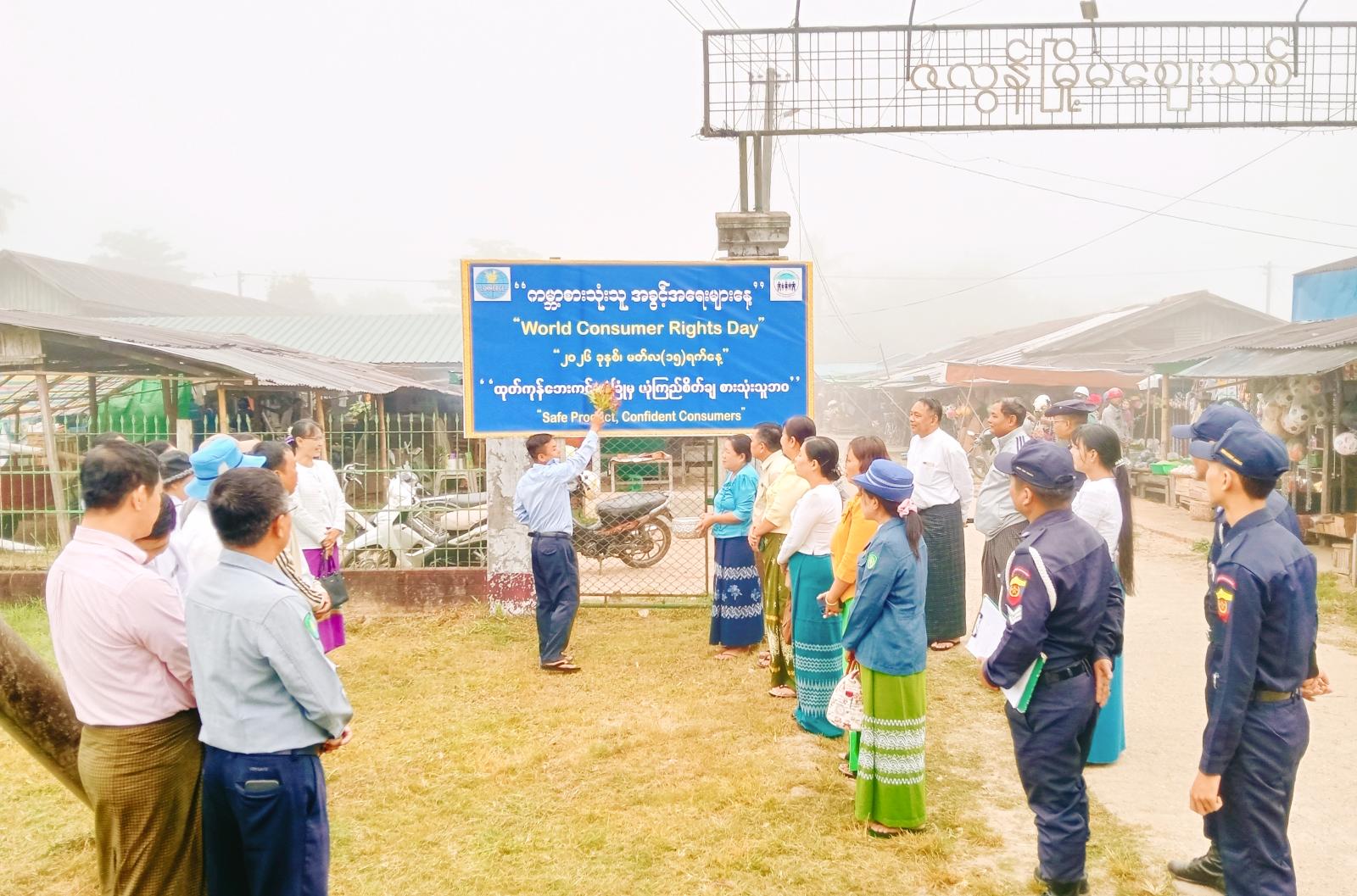 ကမ္ဘာ့စားသုံးသူအခွင့်အရေးများနေ့အထိမ်းအမှတ် ထုတ်ကုန်ဘေးကင်းလုံခြုံမှ ယုံကြည်စိတ်ချ စားသုံးသူဘဝမြေစိုက်ပိုစတာအား မြို့နယ်စီမံခန့်ခွဲရေးနှင့်အုပ်ချုပ်ရေးကော်မတီဥက္ကဋ္ဌ ဦးထွန်း ထွန်းလင်းနှင့်တာဝန်ရှိသူများက အမွှေးနံ့သာရေများ ပက်ဖြန်း၍ စုပေါင်းမှတ်တမ်းဓာတ်ပုံ ရိုက်ကူးခဲ့ကြသည်။ ယင်းနောက် မြို့နယ်စီမံခန့်ခွဲရေးနှင့်အုပ်ချုပ်ရေးကော်မတီဥက္ကဋ္ဌ ဦးထွန်းထွန်းလင်းနှင့်အဖွဲ့ဝင်များ၊ မြို့နယ်အဆင့်ဌာနဆိုင်ရာများက စီးပွားရေးနှင့်ကူးသန်း ရောင်းဝယ်ရေးဝန်ကြီးဌာန၊ စားသုံးသူရေးရာဦးစီးဌာနမှထုတ်ဝေသည့် ကုန်အညွှန်း အမှတ် အသားပြည့်စုံမှ စိတ်ချယုံကြည်စားသုံးကြ လက်ကမ်းစာစောင်နှင့် စားသုံးသူဆိုင်ရာ အသိပညာပေးလက်ကမ်းစာစောင်များကို မြို့မစျေးသစ်အတွင်းရှိ စျေးရောင်း၊ စျေးဝယ်ပြည်သူများအား ဖြန့်ဝေပေးခဲ့သည်။