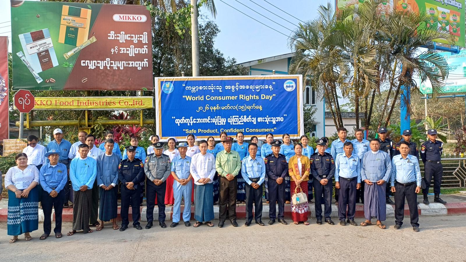 ဧရာဝတီတိုင်းဒေသကြီး၊ ဖျာပုံခရိုင်၊ ဖျာပုံမြို့နယ်တွင် ခရိုင်စားသုံးသူရေးရာဦးစီးဌာနမှ ဦးဆောင်၍ ၂၀၂၆ ခုနှစ်၊ မတ်လ (၁၅) ရက်နေ့တွင် ကျရောက်မည့် “ကမ္ဘာ့စားသုံးသူ အခွင့်အရေးများနေ့” “World Consumer Rights Day”ယခုနှစ်ဆောင်ပုဒ်ဖြစ်သော “ထုတ်ကုန်ဘေးကင်းလုံခြုံမှ ယုံကြည်စိတ်ချ စားသုံးသူဘဝ” ဆိုင်းဘုတ်စိုက်ထူခြင်းနှင့် အသိပညာပေး စာစောင်များ အခမဲ့ဖြန့်ဝေခြင်းကို ယနေ့နံနက် (၈) နာရီအချိန်က ဖျာပုံမြို့အမှတ် (၃) ရပ်ကွက်၊ ခရိုင်ပြန်ကြားရေးနှင့်ပြည်သူဆက်ဆံရေးဦးစီးဌာနရုံးရှေ့တွင် ကျင်းပသည်။