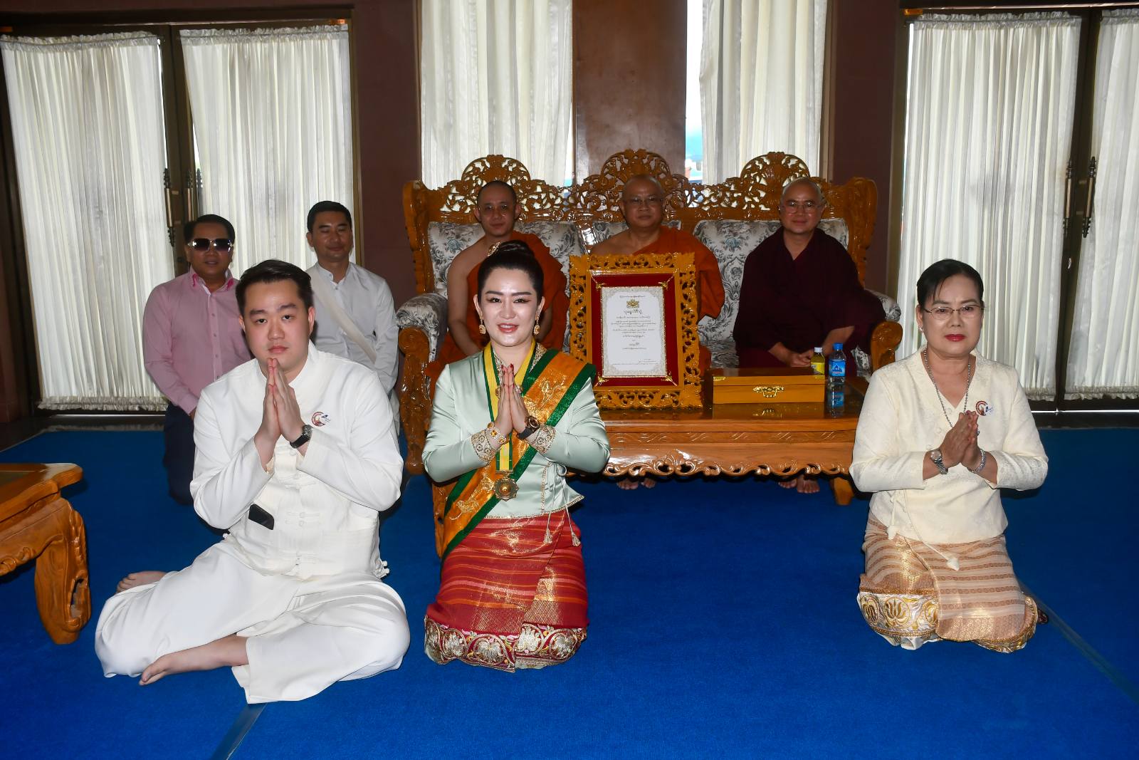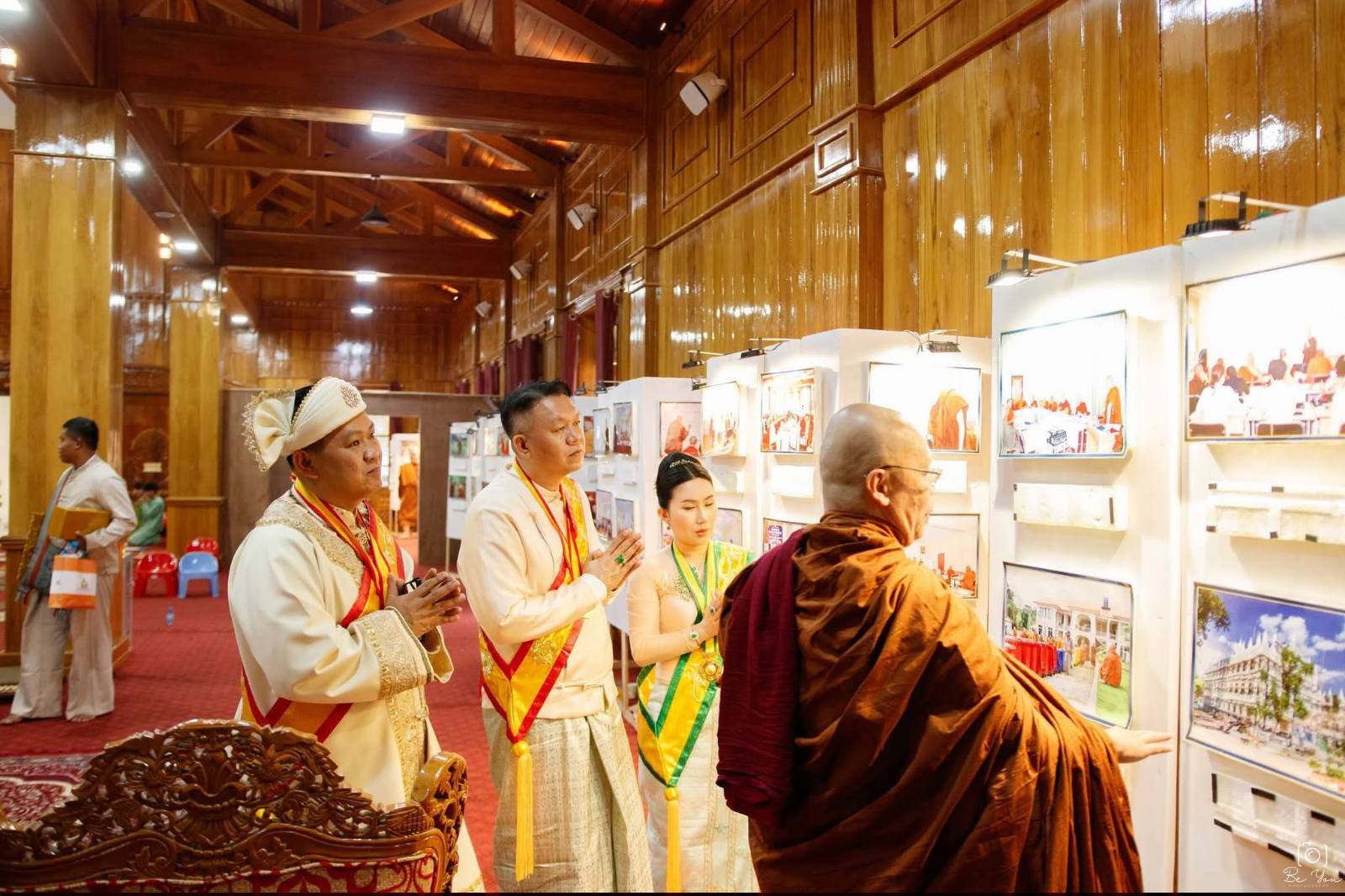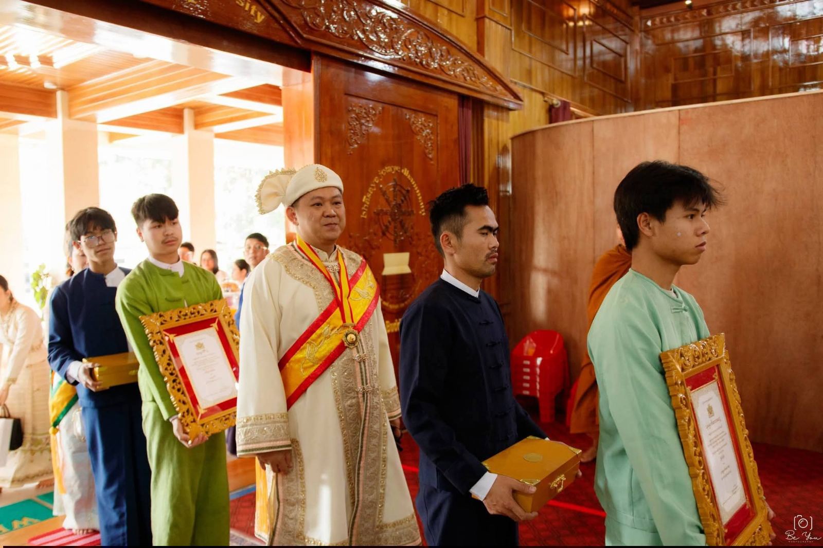 ထို့နောက် မင်္ဂလာချီးကျူးဂုဏ်ပြုပွဲအခမ်းအနားကို ဆန်ဆိုင်း(က)ရပ်ကွက်ရှိ နဂါးနှစ်ကောင်ကျောင်းတိုက်၌ ကျင်းပရာ နဂါးနှစ်ကောင်ကျောင်းတိုက်ဆရာတော် ဘဒ္ဒန္တသုဓမ္မထံမှ ဧည့်ပရိတ်သတ်များက ငါးပါးသီလခံယူဆောက်တည်ပြီး အလှူရှင်များက ဆရာတော်၊ သံဃာတော်များနှင့် ရှင်သာမဏေ ၅၅ ပါးတို့အား ပစ္စည်းလေးပါးနှင့် နဝကမ္မဝတ္ထုငွေများ ဆက်ကပ်လှူဒါန်းကာ အနုမောဒနာတရားနာကြား၍ လှူဒါန်းမှုအစုစုတို့အတွက် ရေစက်သွန်းချ အမျှပေးဝေခဲ့ကြကြောင်း သိရသည်။