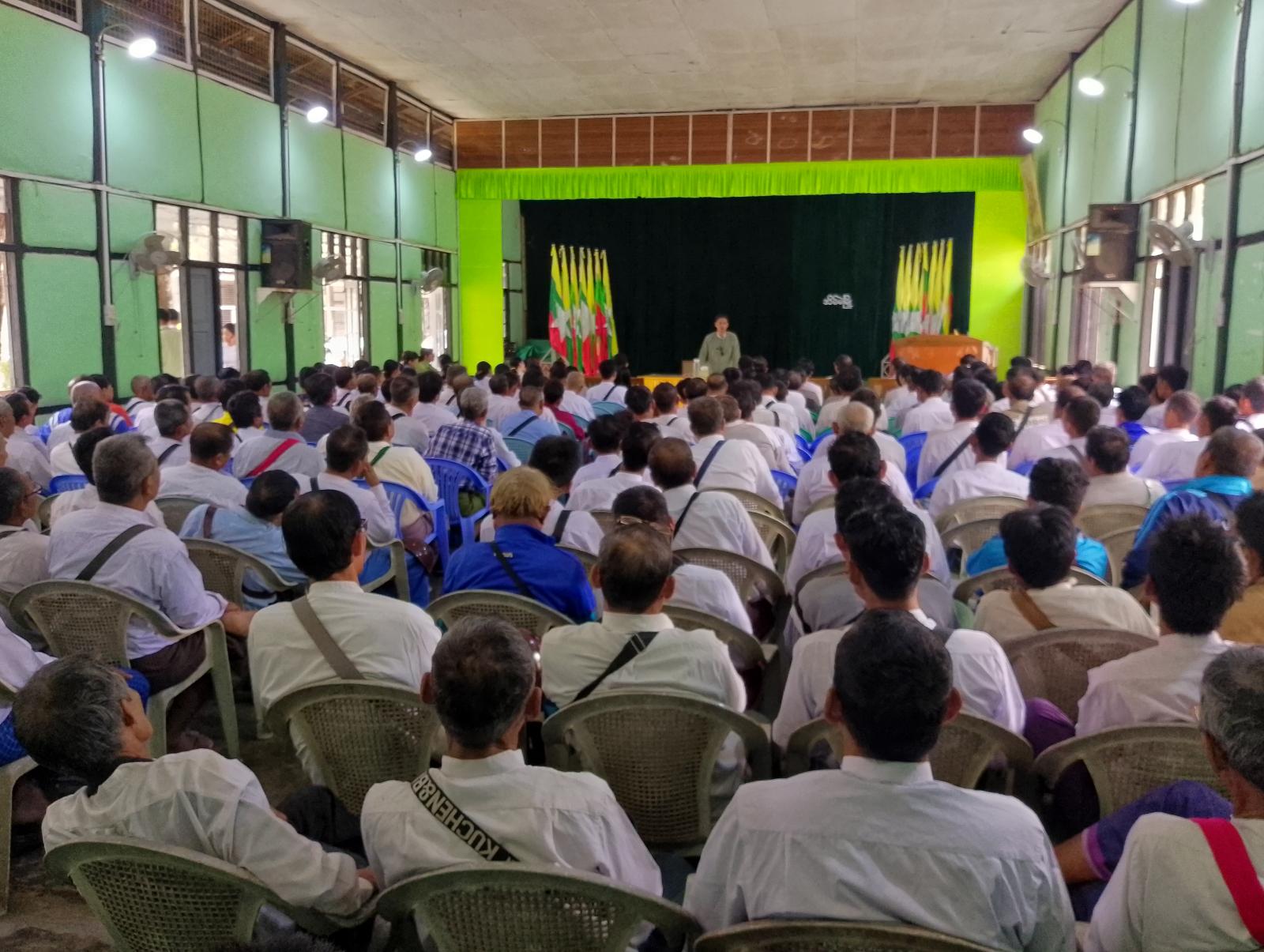 ဧရာဝတီတိုင်းဒေသကြီး၊ မြောင်းမြခရိုင်၊ အိမ်မဲမြို့တွင် ပါတီစုံဒီမိုကရေစီအထွေထွေရွေးကောက်ပွဲကို ၂၀၂၆ ခုနှစ် ဇန်နဝါရီလ (၁၁)ရက်နေ့က ကျင်းပခဲ့ရာ ရွေးကောက်ပွဲမတိုင်မီ၊ ကျင်းပနေချိန်နှင့် ကျင်းပပြီးချိန်များတွင် ဝိုင်းဝန်းကူညီဆောင်ရွက်ပေးသော ရပ်ကွက်/ ကျေးရွာအုပ်စုကော်မရှင်အဖွဲ့ခွဲဥက္ကဋ္ဌနှင့် အဖွဲ့ဝင်များ၊ မဲပေးစက်များအား installation ဆောင်ရွက်ပေးသူများအား ချီးမြှင့်ငွေများပေးအပ်ခြင်းအခမ်းအနားကို ယမန်နေ့နံနက် ၁၀ နာရီအချိန်က အထွေထွေအုပ်ချုပ်ရေးဦးစီးဌာန၊ ရွှေပြည်တန်ခန်းမ၌ ကျင်းပခဲ့သည်။